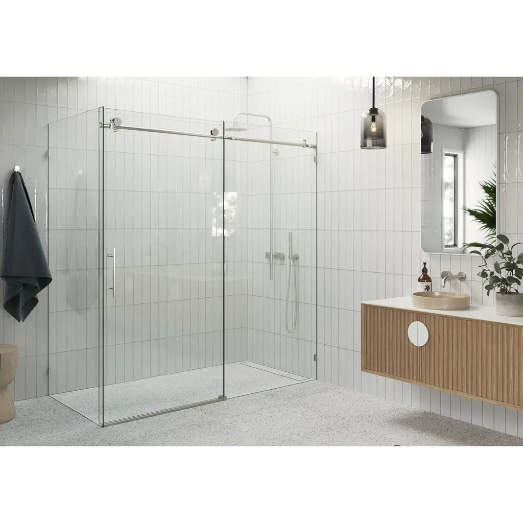 Glass Warehouse 68 In - 72 In X 30 In X 78 In Frameless Sliding Shower Door With Return Panel - Brushed- Nickel