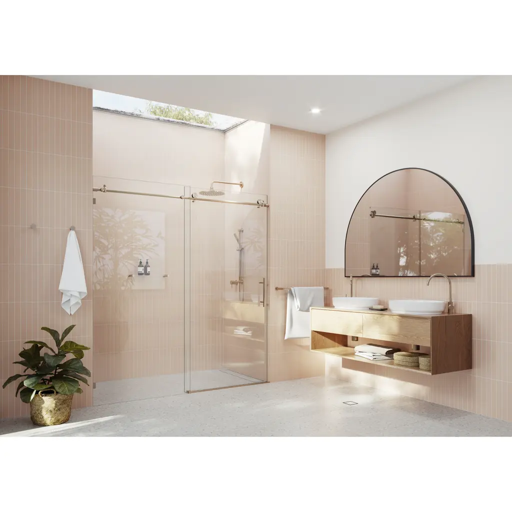 Upgrade your bathroom with the Glass Warehouse frameless sliding shower door, designed to create a spacious, modern feel that complements any style. With exceptional quality brass fittings in a variety of finishes, this shower door is both stylish and functional. At 78 inches in height, it adds unmatched style and value to your bathroom. Made to exceed American and International Standard codes, this shower door is coated with Enduroshield, a revolutionary invisible treatment that repels water, soap scum, and grime, reducing cleaning time by up to 90%. Trust Glass Warehouse for enduring quality you'll love.Features: