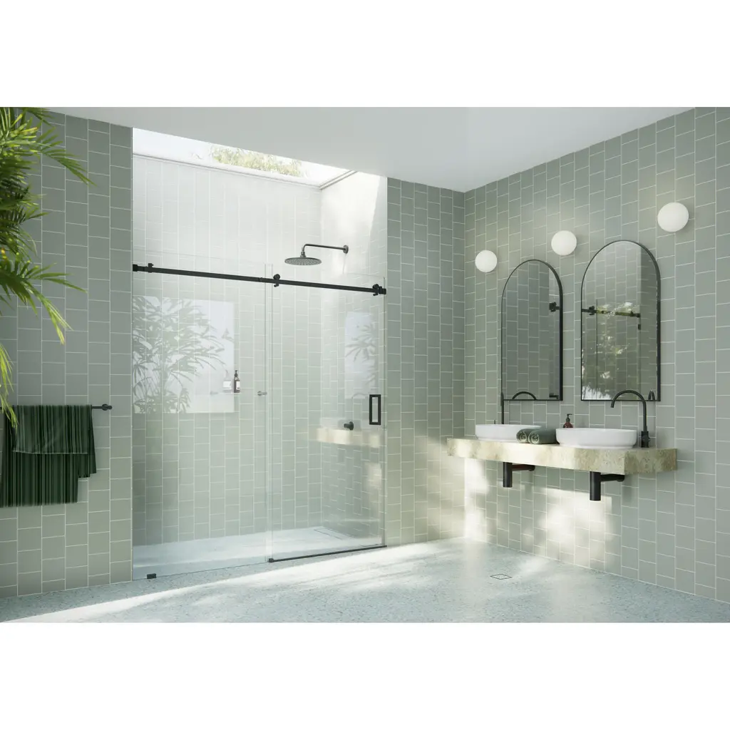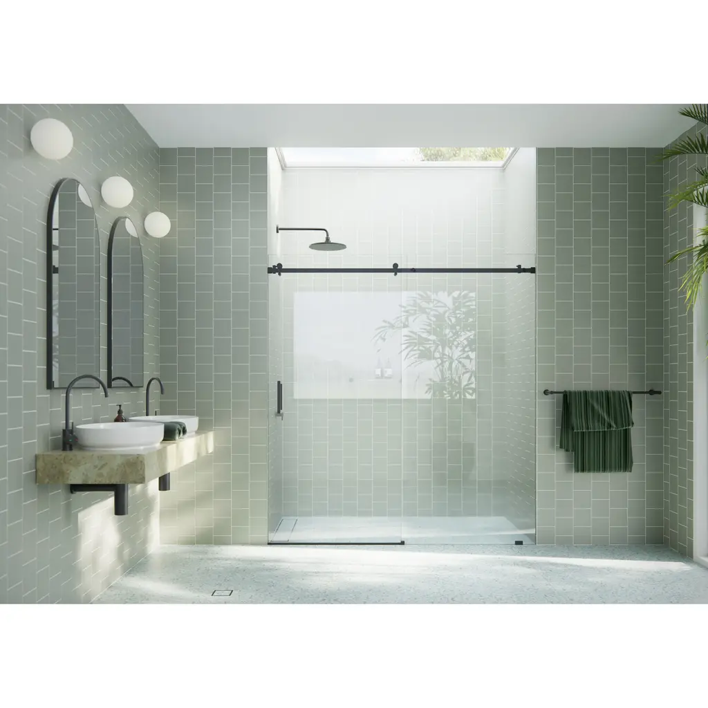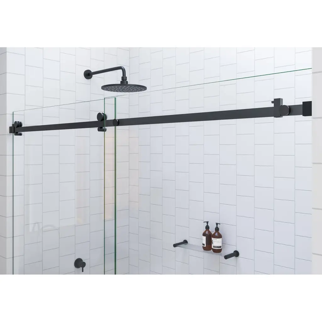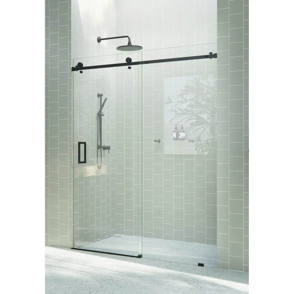 Glass Warehouse 68 In. X 78 In. Sliding Frameless Shower Door With Square Hardware - Matte Black