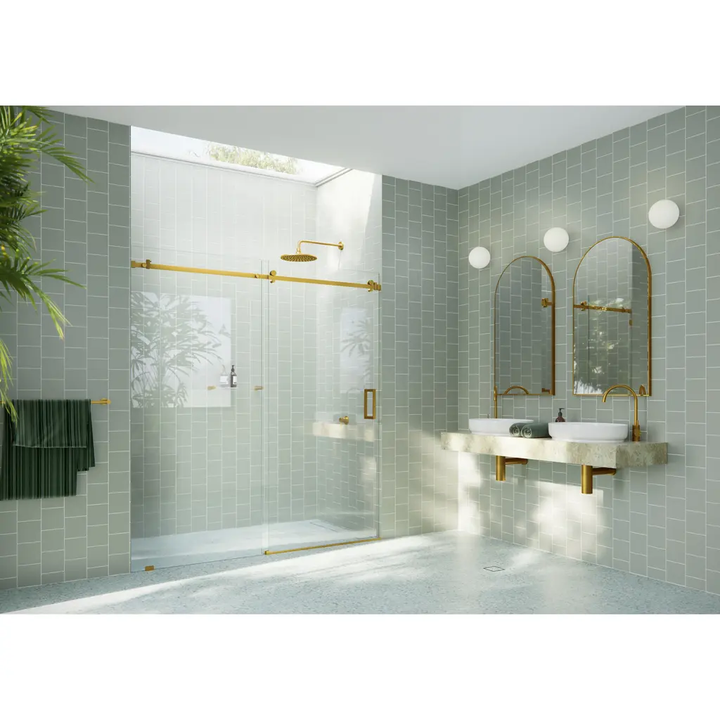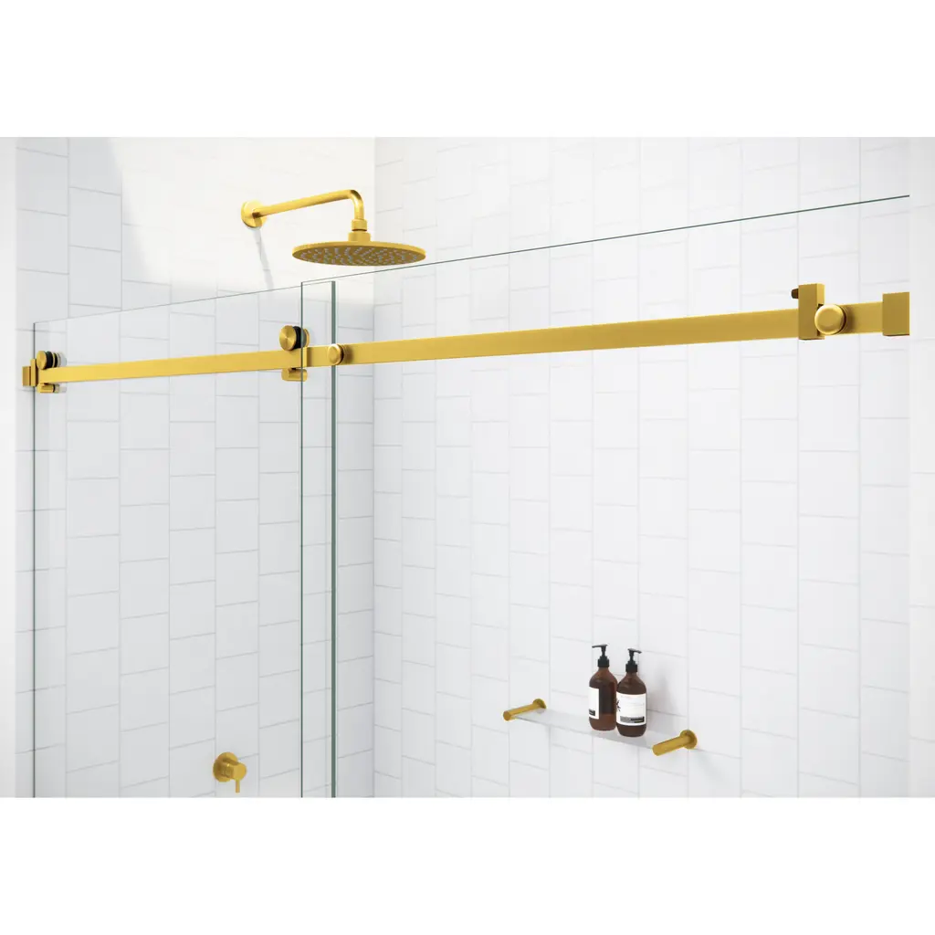 Glass Warehouse 68 In. X 78 In. Sliding Frameless Shower Door With Square Hardware - Satin Brass