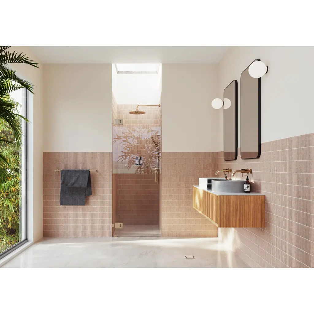 Highlight the fixtures in your bathroom with the understated minimalism of a glass-hinged corner shower enclosure. Taller than most competitor shower enclosures, our frameless 3/8" tempered glass panels come in a standard 78" height. At the same time, the flexibility of a glass-hinged panel allows room for wall accessories or a design that doesn't suit a wall-hung door. Glass is treated on both sides with EnduroShield coating, which aids in repelling water and soap residue, allowing the panels to be fully reversible. In addition, our superior quality solid brass hardware is available in a variety of color finishes to suit any bathroom. With our extensive range of frameless shower door and panel sizes, the Halo walk-in enclosure by Glass Warehouse is perfect for any space, creating a light and airy feel to your bathroom.