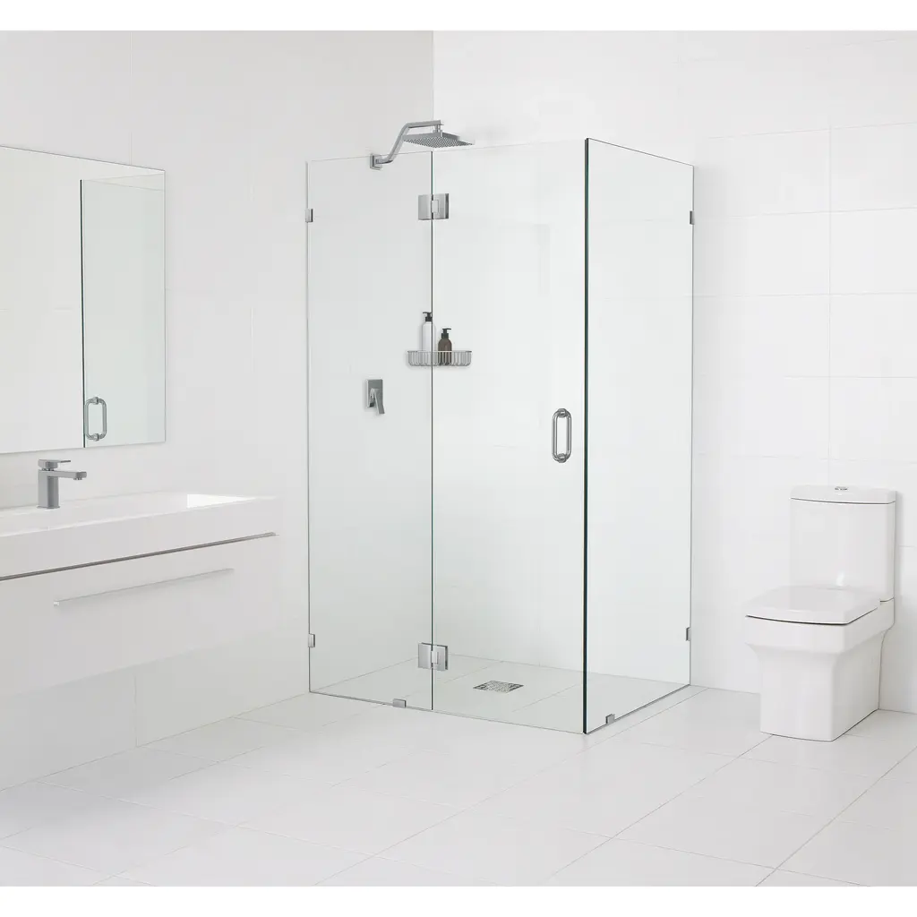 -Images do not show actual size/proportion-Measurement 1 = Height-Measurement 2 = Door + Hinge panel measurement-Measurement 3 = Return panel measurement Highlight the fixtures in your bathroom with the understated minimalism of a glass-hinged 90-degree corner shower enclosure. Taller than most competitor shower enclosures, our frameless 3/8" tempered glass panels come in a standard 78" height. At the same time, the flexibility of a glass-hinged panel allows room for wall accessories or a design that doesn't suit a wall-hung door. Glass is treated on both sides with EnduroShield coating, which aids in repelling water and soap residue, allowing the panels to be fully reversible. In addition, our superior quality solid brass hardware is available in a variety of color finishes to suit any bathroom. With our extensive range of frameless shower door and panel sizes, the Halo walk-in enclosure by Glass Warehouse is perfect for any space, creating a light and airy feel to your bathroom.