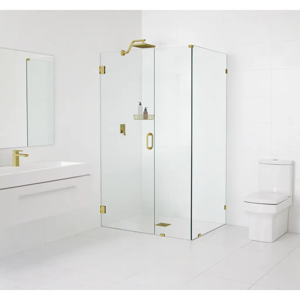 Glass Warehouse 78" X 46" X 32" Frameless 90 Degree Shower Enclosure - Wall Hinge - Satin Brass