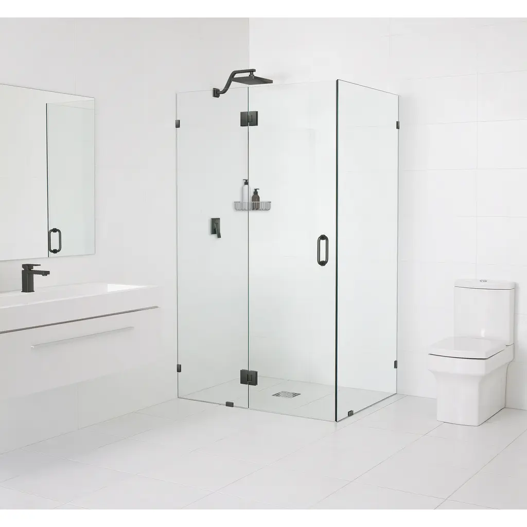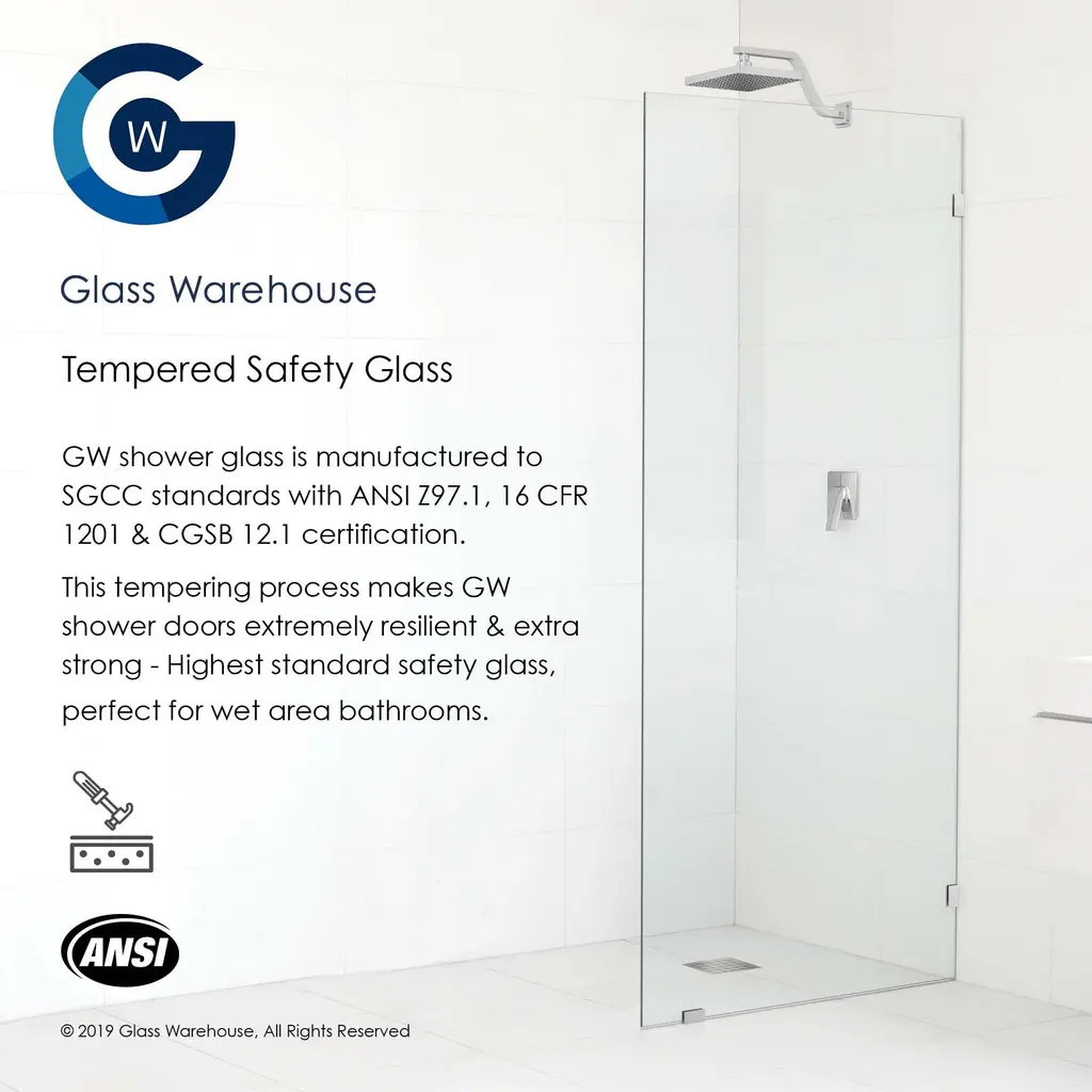 -Images do not show actual size/proportion-Measurement 1 = Height-Measurement 2 = Door + Hinge panel measurement-Measurement 3 = Return panel measurement Highlight the fixtures in your bathroom with the understated minimalism of a glass-hinged 90-degree corner shower enclosure. Taller than most competitor shower enclosures, our frameless 3/8" tempered glass panels come in a standard 78" height. At the same time, the flexibility of a glass-hinged panel allows room for wall accessories or a design that doesn't suit a wall-hung door. Glass is treated on both sides with EnduroShield coating, which aids in repelling water and soap residue, allowing the panels to be fully reversible. In addition, our superior quality solid brass hardware is available in a variety of color finishes to suit any bathroom. With our extensive range of frameless shower door and panel sizes, the Halo walk-in enclosure by Glass Warehouse is perfect for any space, creating a light and airy feel to your bathroom.