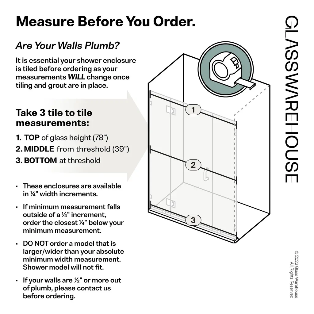 Glass Warehouse 78" X 74.5" Frameless 3 Panel Inline Shower Door - Matte Black