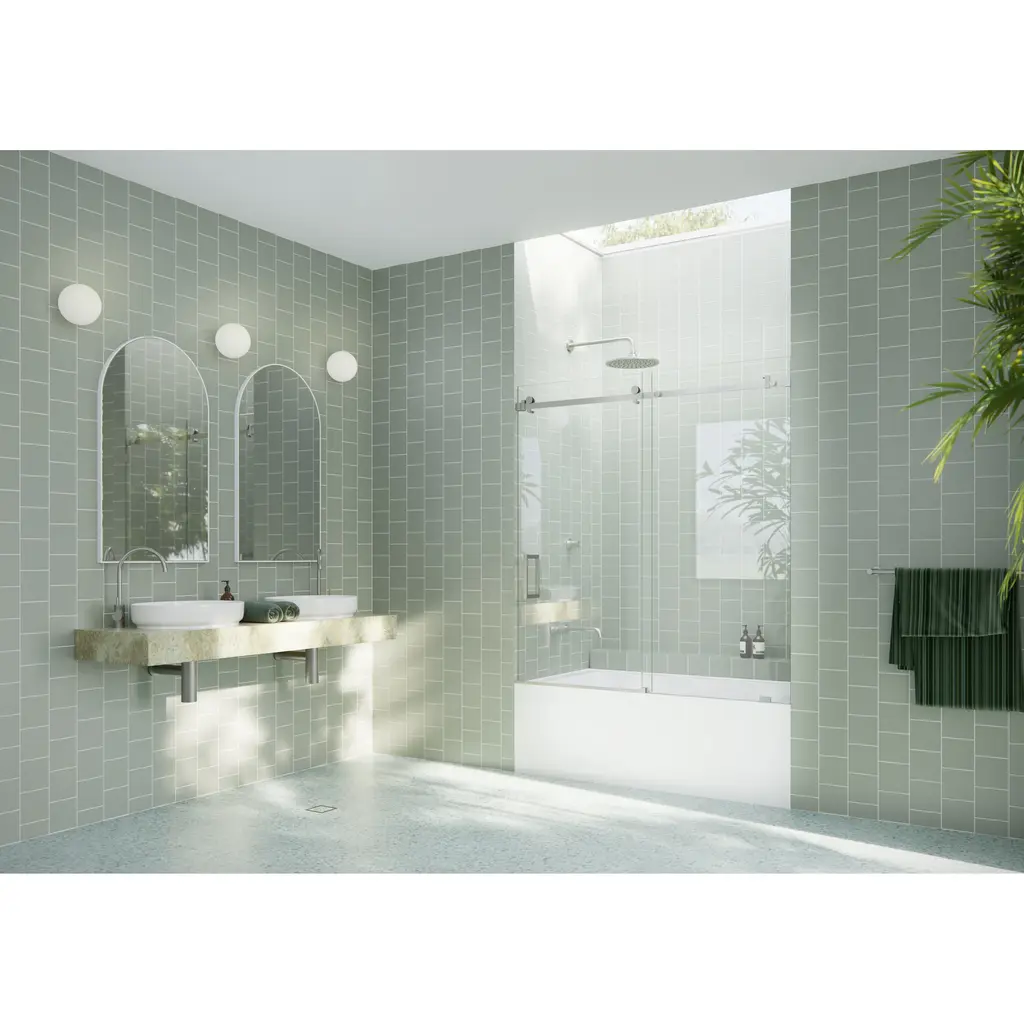 For an affordable upgrade to your bathroom without compromising on quality or design, the Astro range of sliding bathtub shower enclosures is the perfect choice. Each frameless 5/16” tempered glass panel comes in a standard 60” height with one sliding panel and one fixed panel. Glass is treated on both sides with coating, which aids in repelling water and soap residue, allowing the panels to be fully reversible. In addition, our extensive collection of sliding shower doors and panels feature superior quality stainless steel hardware in a variety of color finishes to suit any bathroom. The Astro by Glass Warehouse is a beautifully engineered bathtub enclosure with a wide range of panel sizes available. Finished with square hardware that will modernize the overall aesthetic of your space, it’s a simple, elegant solution that keeps your shower spray in check.Glass Warehouse B-SQSLD-72 Features:Glass Warehouse B-SQSLD-72 Specifications: