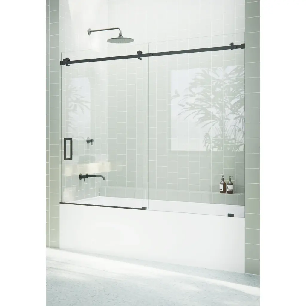 For an affordable upgrade to your bathroom without compromising on quality or design, the Astro range of sliding bathtub shower enclosures is the perfect choice. Each frameless 5/16” tempered glass panel comes in a standard 60” height with one sliding panel and one fixed panel. Glass is treated on both sides with coating, which aids in repelling water and soap residue, allowing the panels to be fully reversible. In addition, our extensive collection of sliding shower doors and panels feature superior quality stainless steel hardware in a variety of color finishes to suit any bathroom. The Astro by Glass Warehouse is a beautifully engineered bathtub enclosure with a wide range of panel sizes available. Finished with square hardware that will modernize the overall aesthetic of your space, it’s a simple, elegant solution that keeps your shower spray in check.Glass Warehouse B-SQSLD-72 Features:Glass Warehouse B-SQSLD-72 Specifications: