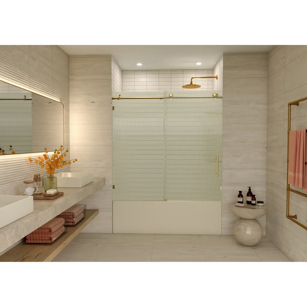For a larger shower enclosure in a smaller room, the Galaxy, our high-end, sliding door model, makes the most of your space without compromising style. Taller than most competitor shower enclosures, our frameless 3/8” tempered glass panels come in a standard 60” height with one sliding panel and one fixed panel. Glass is treated on both sides with coating, which aids in repelling water and soap residue, allowing the panels to be fully reversible. In addition, our superior quality stainless steel hardware is available in a variety of color finishes to suit any bathroom. With our extensive range of frameless shower door and panel sizes, the Galaxy by Glass Warehouse has a design that creates a clean, custom look. A fixed panel adds strength, while the high-quality roller system allows the door to glide easily as you slide it open and closed. Perfect for any bathroom, your space will be transformed, making it feel bigger and brighter.Glass Warehouse BFLSLD-60-R Features:Glass Warehouse BFLSLD-60-R Specifications: