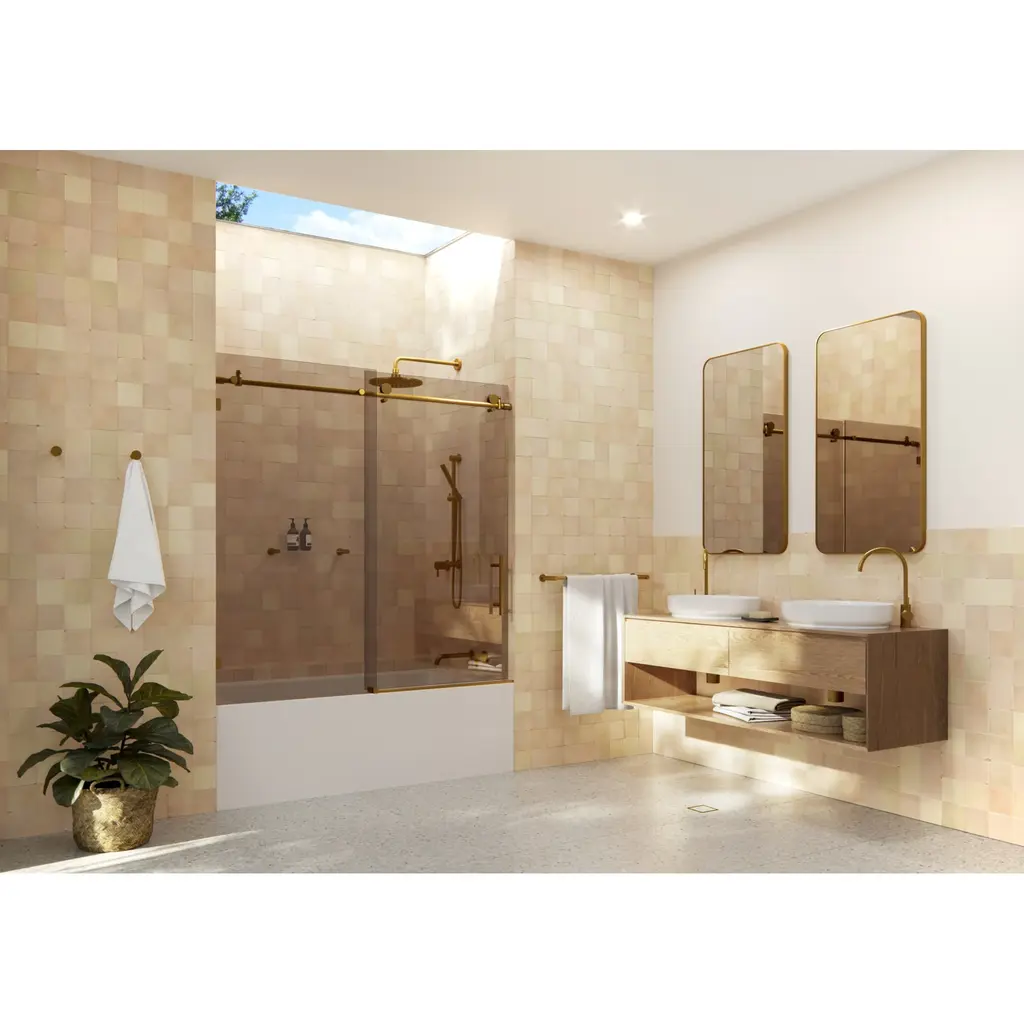 The Equinox, our high-end, sliding door model, is a simple way to update your bathtub. Each frameless 3/8" tempered glass panel comes in a standard 60" height with one sliding panel and one fixed panel. Glass is treated on both sides with coating, which aids in repelling water and soap residue, allowing the panels to be fully reversible. In addition, our superior quality stainless steel hardware is available in a variety of color finishes to suit any bathroom. With our extensive collection of shower door panel sizes, the Equinox shower enclosure by Glass Warehouse is designed to easily fit over your bathtub. Doors slide effortlessly on high-quality stainless-steel rollers, creating a look that's far sleeker than a shower curtain.Glass Warehouse BTBSLD-60 Features:Glass Warehouse BTBSLD-60 Specifications: