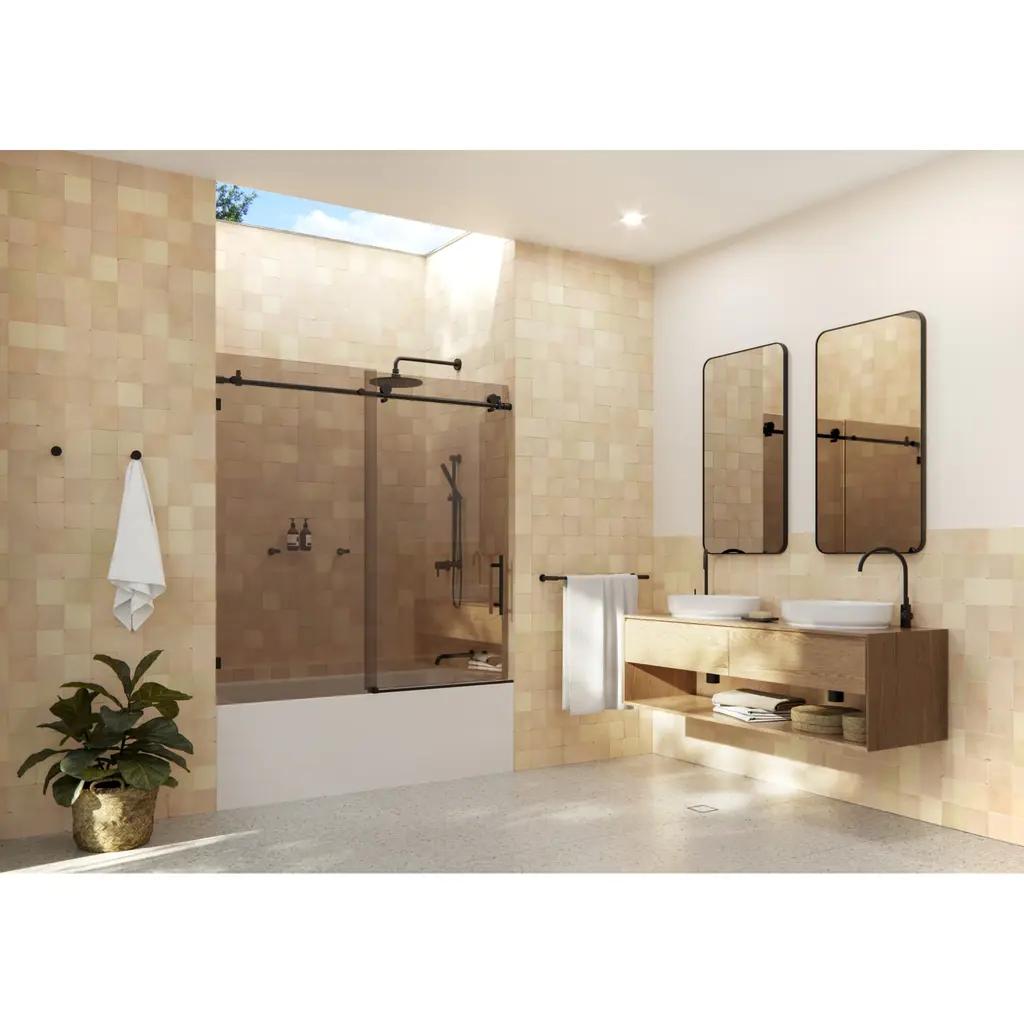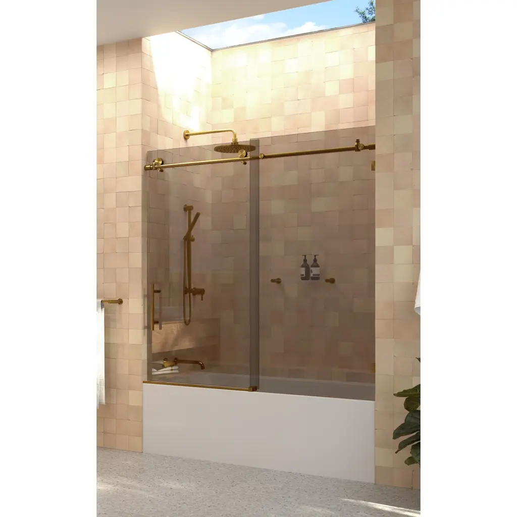 The Equinox, our high-end, sliding door model, is a simple way to update your bathtub. Each frameless 3/8" tempered glass panel comes in a standard 60" height with one sliding panel and one fixed panel. Glass is treated on both sides with coating, which aids in repelling water and soap residue, allowing the panels to be fully reversible. In addition, our superior quality stainless steel hardware is available in a variety of color finishes to suit any bathroom. With our extensive collection of shower door panel sizes, the Equinox shower enclosure by Glass Warehouse is designed to easily fit over your bathtub. Doors slide effortlessly on high-quality stainless-steel rollers, creating a look that's far sleeker than a shower curtain.Glass Warehouse BTBSLD-60 Features:Glass Warehouse BTBSLD-60 Specifications: