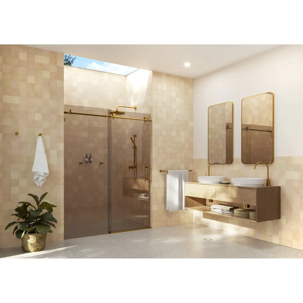Glass Warehouse Btsld-60 Equinox 78" High X 60" Wide Sliding Frameless - Satin Brass