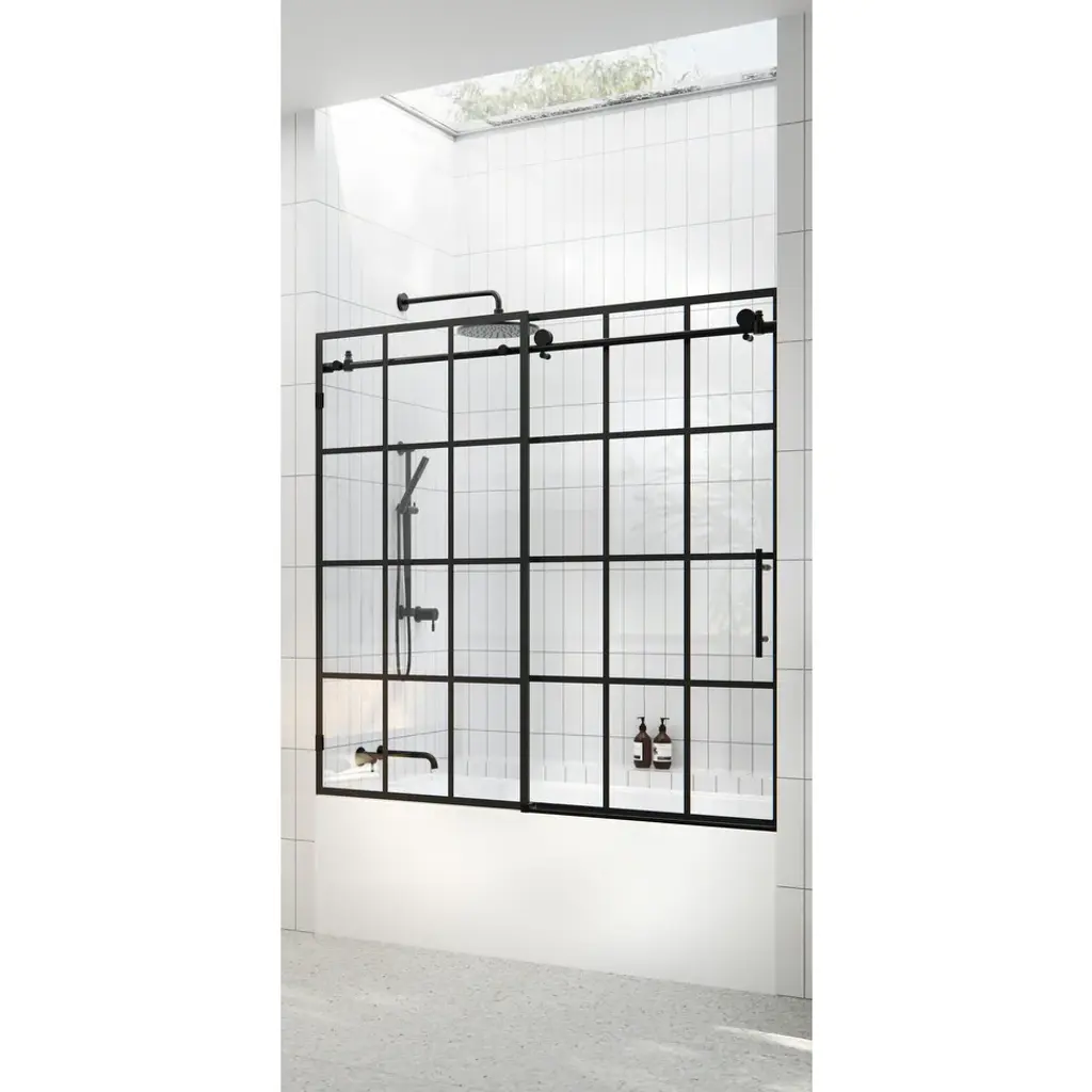 Make a striking statement in your bathroom with the eye-catching design of the Esprit, our high-end sliding bathtub shower door model. Premium glass enhances the light in your space, while the industrial aesthetic introduces a contemporary feel. Each 3/8” tempered frameless glass panel comes in a standard 60” height with one right-hand sliding door and one fixed panel. Glass is treated with coating, which aids in repelling water and soap residue. In addition, our superior quality solid brass hardware is available in a variety of color finishes to suit any bathroom. With an extensive range of panel sizes available, the Esprit shower enclosure by Glass Warehouse is designed to easily fit over your bathtub. The door slides effortlessly on high-quality stainless-steel rollers, creating a look that’s far more elegant than a shower curtain. At the same time, the sleek ceramic finish is baked onto the glass, making it a long-lasting, easy-to-clean design.Glass Warehouse FSSBSLD-R-60 Features:Glass Warehouse FSSBSLD-R-60 Specifications: