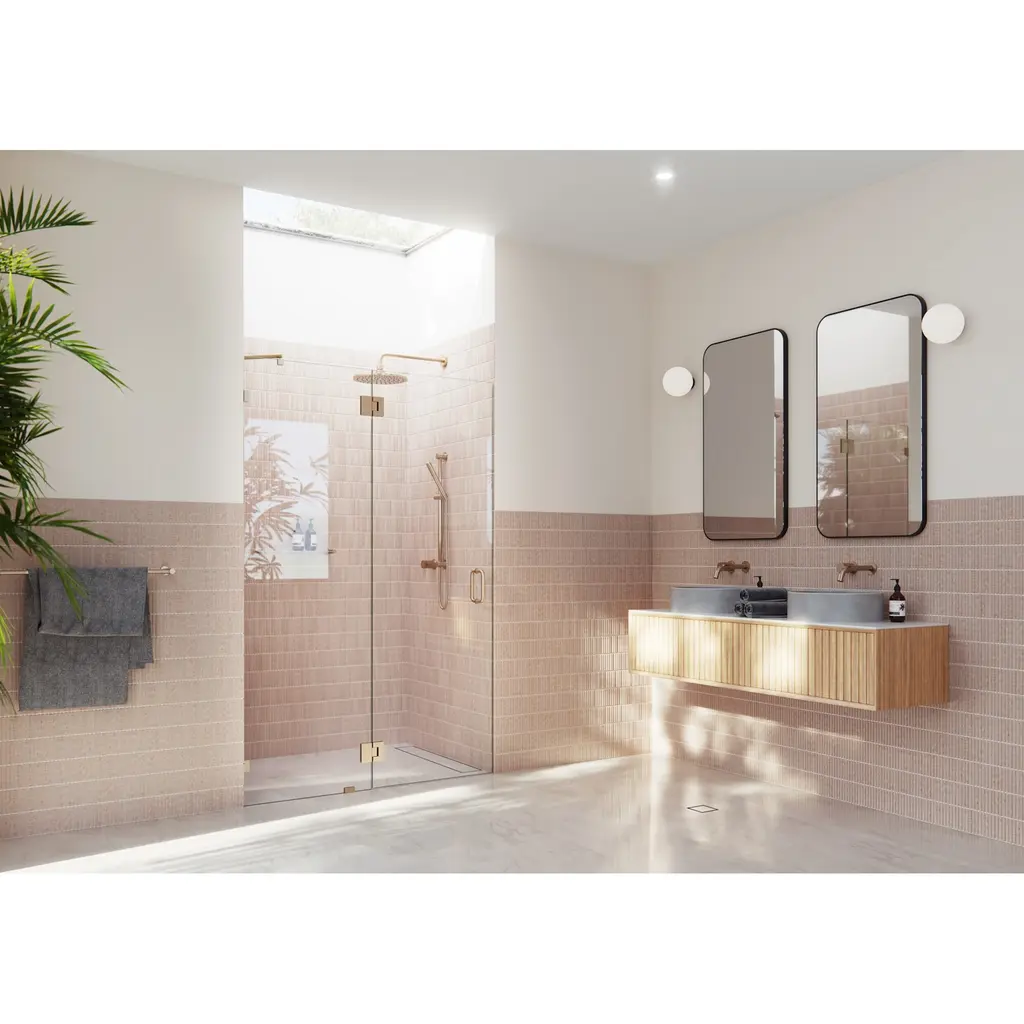The Stellar is a beautiful, three-panel, glass-hinged shower enclosure that adds openness and an element of elegance and luxury to your bathroom. Taller than most competitor shower enclosures, each frameless 3/8" tempered glass panel comes in a standard 78" height. At the same time, the door is positioned in the center to allow easy access and space for wall accessories or a design that doesn't suit a wall-hung door. Glass is treated on both sides with EnduroShield coating, which aids in repelling water and soap residue, allowing the panels to be fully reversible. In addition, the superior quality solid brass hardware is available in a variety of color finishes to suit any bathroom. With extensive range of frameless shower doors and panel sizes, the Stellar by Glass Warehouse is the perfect model to suit a dual shower or to span a wider shower enclosure.Glass Warehouse GHF-40.5 Features:Glass Warehouse GHF-40.5 Specifications: