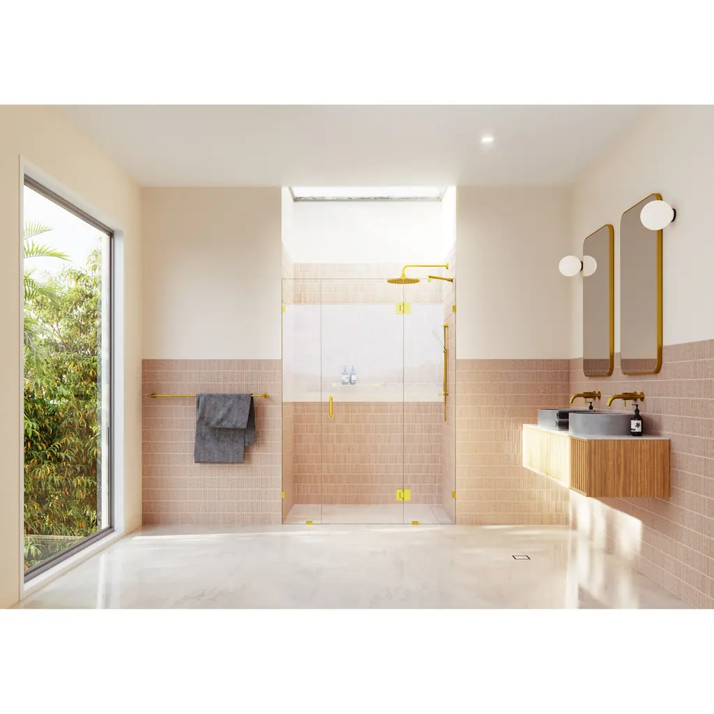 The Stellar is a beautiful, three-panel, glass-hinged shower enclosure that adds openness and an element of elegance and luxury to your bathroom. Taller than most competitor shower enclosures, each frameless 3/8" tempered glass panel comes in a standard 78" height. At the same time, the door is positioned in the center to allow easy access and space for wall accessories or a design that doesn't suit a wall-hung door. Glass is treated on both sides with EnduroShield coating, which aids in repelling water and soap residue, allowing the panels to be fully reversible. In addition, the superior quality solid brass hardware is available in a variety of color finishes to suit any bathroom. With extensive range of frameless shower doors and panel sizes, the Stellar by Glass Warehouse is the perfect model to suit a dual shower or to span a wider shower enclosure.Glass Warehouse GHF-62.5 Features:Glass Warehouse GHF-62.5 Specifications: