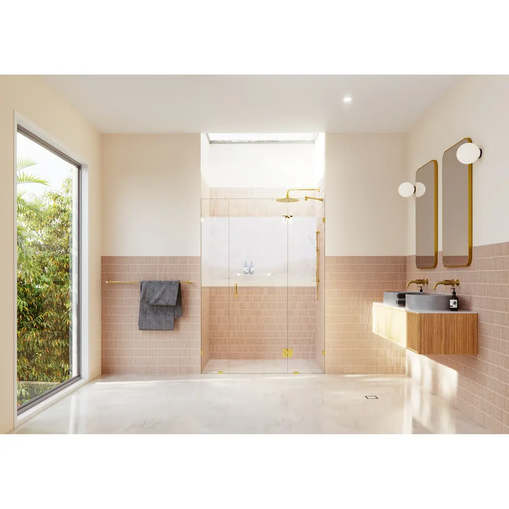 The Stellar is a beautiful, three-panel, glass-hinged shower enclosure that adds openness and an element of elegance and luxury to your bathroom. Taller than most competitor shower enclosures, each frameless 3/8" tempered glass panel comes in a standard 78" height. At the same time, the door is positioned in the center to allow easy access and space for wall accessories or a design that doesn't suit a wall-hung door. Glass is treated on both sides with EnduroShield coating, which aids in repelling water and soap residue, allowing the panels to be fully reversible. In addition, the superior quality solid brass hardware is available in a variety of color finishes to suit any bathroom. With extensive range of frameless shower doors and panel sizes, the Stellar by Glass Warehouse is the perfect model to suit a dual shower or to span a wider shower enclosure.Glass Warehouse GHF-62.75 Features:Glass Warehouse GHF-62.75 Specifications: