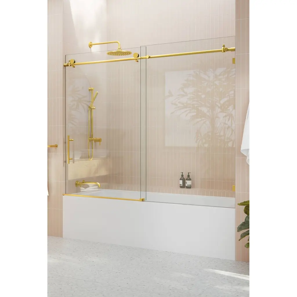 The Eclipse, our high-end, sliding door model, is a simple way to update your bathtub. Each frameless 3/8" tempered glass panel comes in a standard 60" height with one sliding panel and one fixed panel. Glass is treated on both sides with coating, which aids in repelling water and soap residue, allowing the panels to be fully reversible. In addition, our superior quality stainless steel hardware is available in a variety of color finishes to suit any bathroom. With our extensive collection of shower door panel sizes, the Eclipse shower enclosure by Glass Warehouse is designed to easily fit over your bathtub. Doors slide effortlessly on high-quality stainless-steel rollers, creating a look that's far sleeker than a shower curtain.Glass Warehouse GW-B-SLD-72 Features:Glass Warehouse GW-B-SLD-72 Specifications: