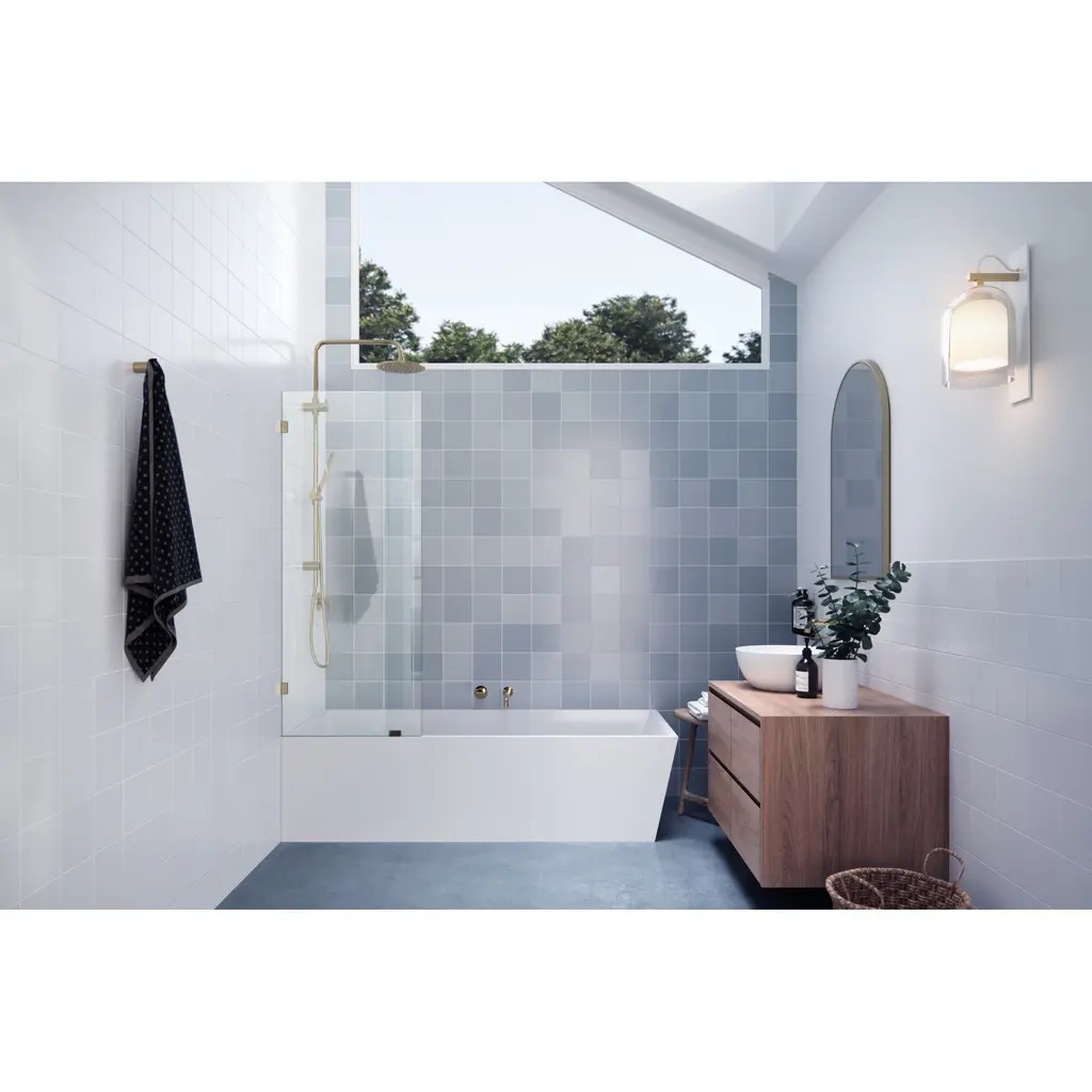 A beautiful fixed shower panel over your bathtub is a simple way to add a luxurious feel to your bathroom. Each frameless 3/8" tempered glass panel comes in a standard 58.25" height. Glass is treated on both sides with coating, which aids in repelling water and soap residue, allowing the panels to be fully reversible. In addition, our superior quality solid brass hardware is available in a variety of color finishes to suit any bathroom. With our extensive range of fixed panel sizes, the Vela by Glass Warehouse is a bathtub shower enclosure designed to allow natural light to flood through your bathroom, making your space feel bigger and brighter.Glass Warehouse GW-BF-24.5 Features:Glass Warehouse GW-BF-24.5 Specifications: