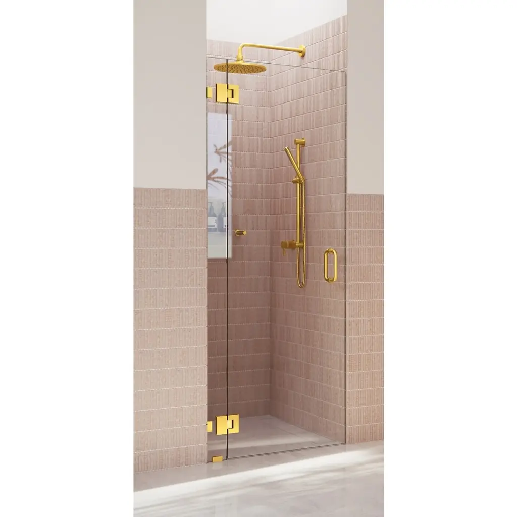Highlight the fixtures in your bathroom with the understated minimalism of a glass-hinged corner shower enclosure. This frameless 3/8” tempered glass panels come in a standard 78” height. At the same time, the flexibility of a glass-hinged panel allows room for wall accessories or a design that doesn't suit a wall-hung door. Glass is treated on both sides with EnduroShield coating, which aids in repelling water and soap residue, allowing the panels to be fully reversible. In addition, the superior quality solid brass hardware is available in a variety of color finishes to suit any bathroom. With extensive range of frameless shower door and panel sizes, the Halo walk-in enclosure by Glass Warehouse is perfect for any space, creating a light and airy feel to your bathroom.Glass Warehouse GW-GH-34.5 Features:Glass Warehouse GW-GH-34.5 Specifications: