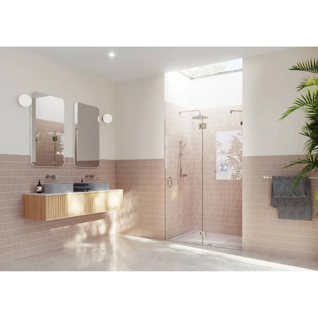 Highlight the fixtures in your bathroom with the understated minimalism of a glass-hinged corner shower enclosure. This frameless 3/8” tempered glass panels come in a standard 78” height. At the same time, the flexibility of a glass-hinged panel allows room for wall accessories or a design that doesn't suit a wall-hung door. Glass is treated on both sides with EnduroShield coating, which aids in repelling water and soap residue, allowing the panels to be fully reversible. In addition, the superior quality solid brass hardware is available in a variety of color finishes to suit any bathroom. With extensive range of frameless shower door and panel sizes, the Halo walk-in enclosure by Glass Warehouse is perfect for any space, creating a light and airy feel to your bathroom.Glass Warehouse GW-GH-48.75 Features:Glass Warehouse GW-GH-48.75 Specifications: