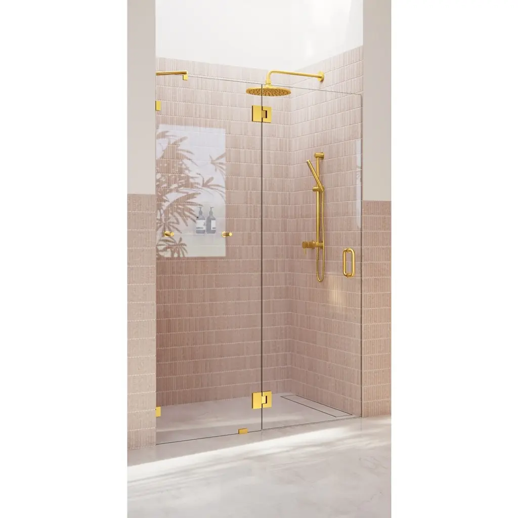 Highlight the fixtures in your bathroom with the understated minimalism of a glass-hinged corner shower enclosure. This frameless 3/8” tempered glass panels come in a standard 78” height. At the same time, the flexibility of a glass-hinged panel allows room for wall accessories or a design that doesn't suit a wall-hung door. Glass is treated on both sides with EnduroShield coating, which aids in repelling water and soap residue, allowing the panels to be fully reversible. In addition, the superior quality solid brass hardware is available in a variety of color finishes to suit any bathroom. With extensive range of frameless shower door and panel sizes, the Halo walk-in enclosure by Glass Warehouse is perfect for any space, creating a light and airy feel to your bathroom.Glass Warehouse GW-GH-49.25 Features:Glass Warehouse GW-GH-49.25 Specifications: