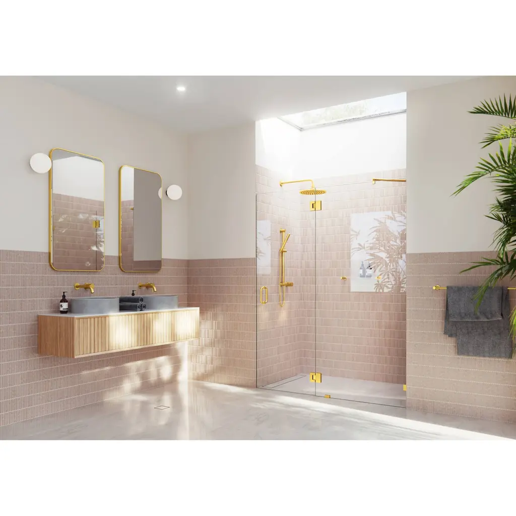 Highlight the fixtures in your bathroom with the understated minimalism of a glass-hinged corner shower enclosure. This frameless 3/8” tempered glass panels come in a standard 78” height. At the same time, the flexibility of a glass-hinged panel allows room for wall accessories or a design that doesn't suit a wall-hung door. Glass is treated on both sides with EnduroShield coating, which aids in repelling water and soap residue, allowing the panels to be fully reversible. In addition, the superior quality solid brass hardware is available in a variety of color finishes to suit any bathroom. With extensive range of frameless shower door and panel sizes, the Halo walk-in enclosure by Glass Warehouse is perfect for any space, creating a light and airy feel to your bathroom.Glass Warehouse GW-GH-60.75 Features:Glass Warehouse GW-GH-60.75 Specifications: