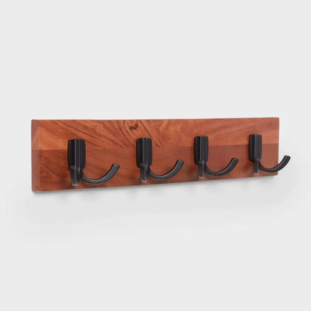 This coat rack is made from solid mango wood and iron, giving it a stylish mixed-material look that's sure to complement your entryway. The base is made from metal and supports the center wooden rod with a finish for a hint of rustic flair. A center ring gives you a spot to hang your umbrellas, while four C-shaped hooks can catch your coats, scarves, and hats. It measures 74" tall and 18" wide, so it won't take up too much room in your foyer or mudroom.