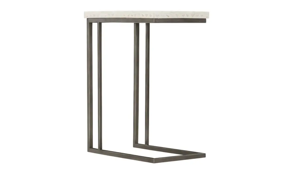 With a convenient C-shape to enhance versatility, the Glendon Tiered Side Table combines Pewter Metal on the base with a Carrara Marble white and gray top for an eclectic blending of elegant, organic materials. No matter where you place this side table in your home, it will be one of the room's standout pieces. This table can only be improved by the objects you add.