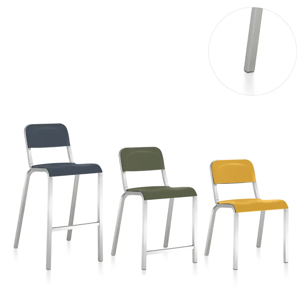Glides for 1951 chairs and stools are offered in three versions, for different types of use. All glides ship in a set of four and fit all 1951 chairs and stools. Standard glides: TPU plastic is a softer plastic, for allround use, including outdoor. Hard floor glides: with felt inserts, for indoor use only. Carpet glides: hard polycarbonate plastic, designed to reduce friction. Also approved for outdoor use.