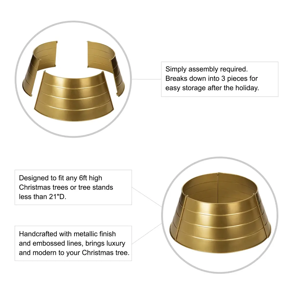 Glitzhome 22"d/26"d Christmas Classic Galvanized Metal Tree Collars - Gold-22"d