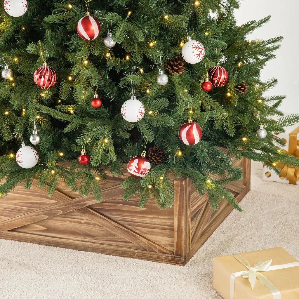 The tree boxes not only add beauty and hide the undesirable parts of your tree, but they also prevent kids and pets from getting into the bottom side of your tree. Give your Christmas tree a clean, inviting look with this wooden tree collar from Glitzhome. Made of solid wood, this tree collar features a rustic, farmhouse-inspired look. Choose from multiple colors and two sizes to best fit your needs.Features:Dimensions:Brand Profile:Glitzhome is a US registered trademark based in Texas USA. We are the professional designer and crafter of home decor products with more than 10 years' experience. Hope you could find your favorite items to add some fresh elements to your home.