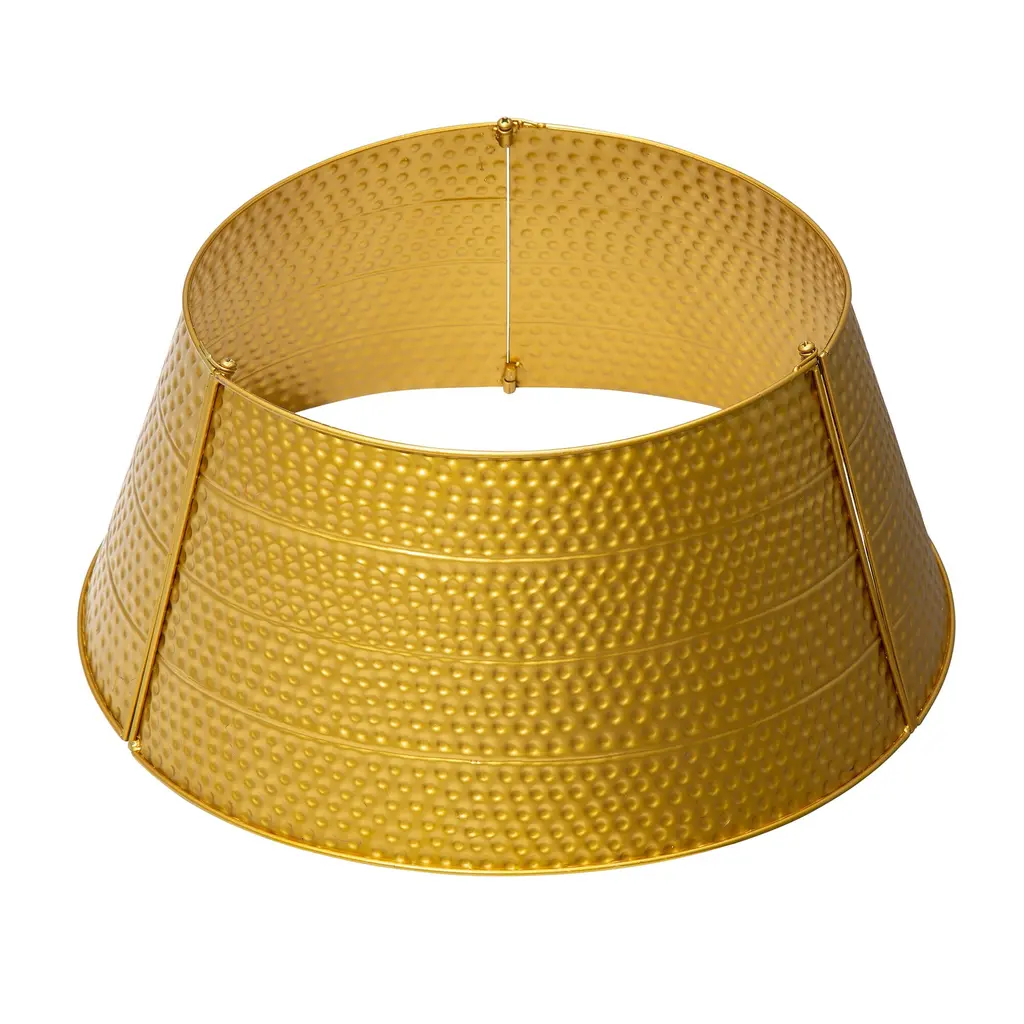 Glitzhome 26"d/22"d Hammer-Harden Textured Metal Christmas Tree Collars - Gold-22"d