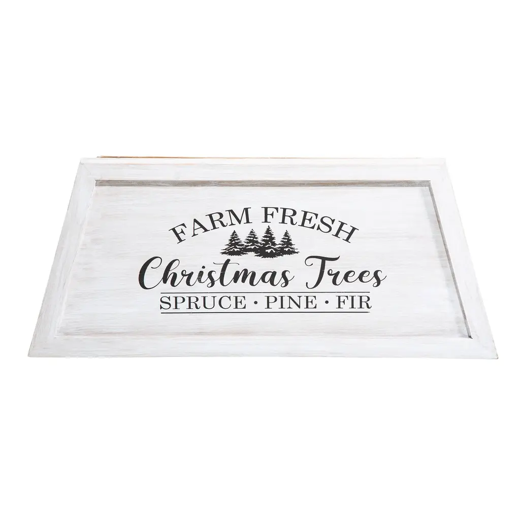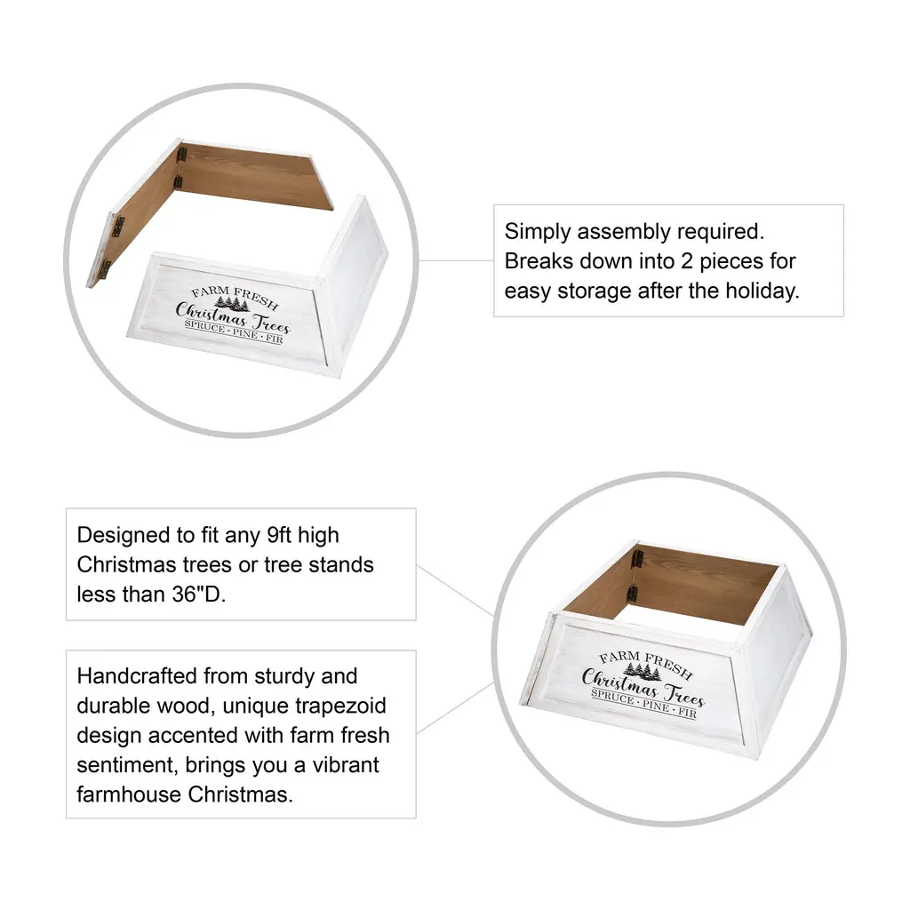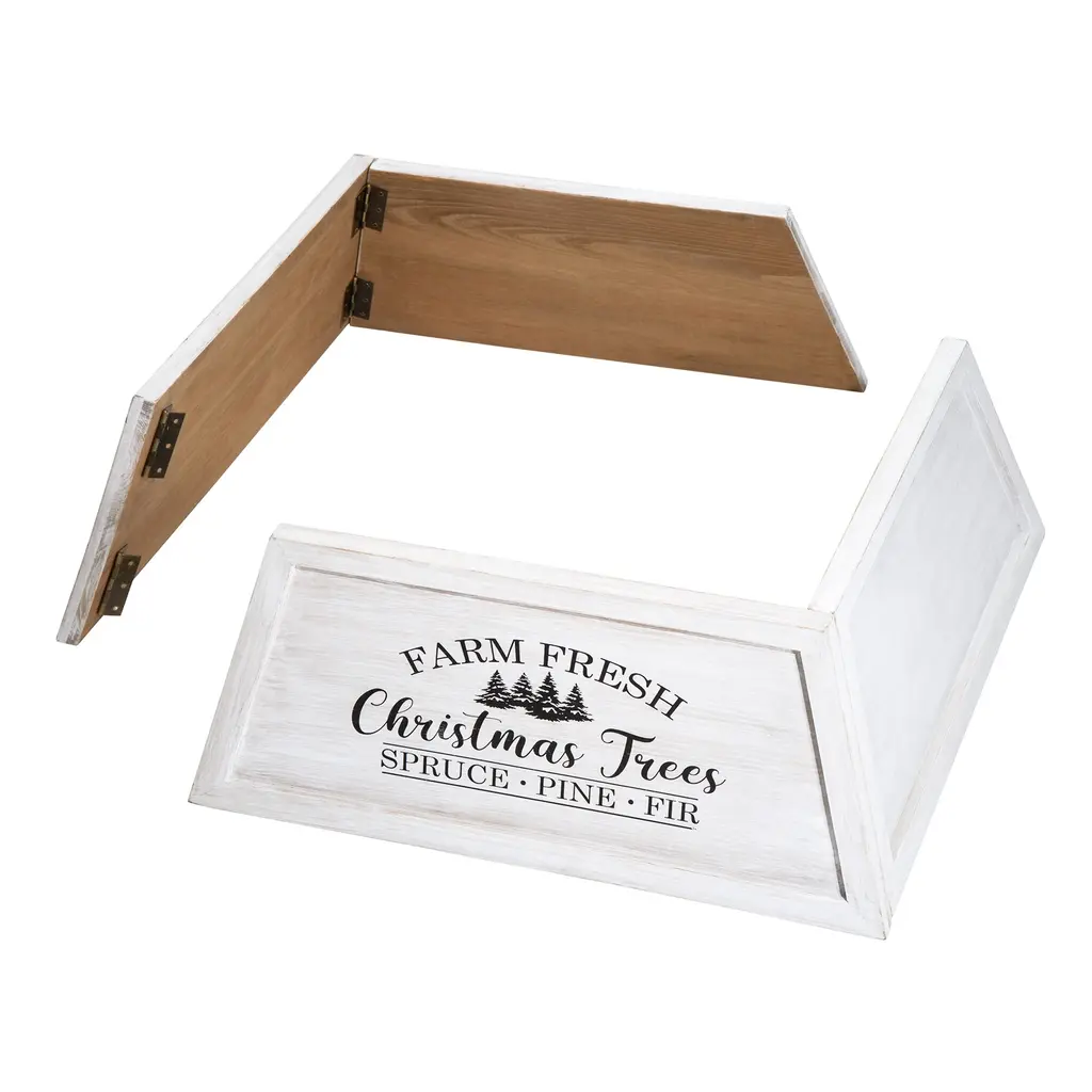 Glitzhome 26"l Wooden Trapezoid Farm Fresh Christmas Tree Collars - 26"l - White