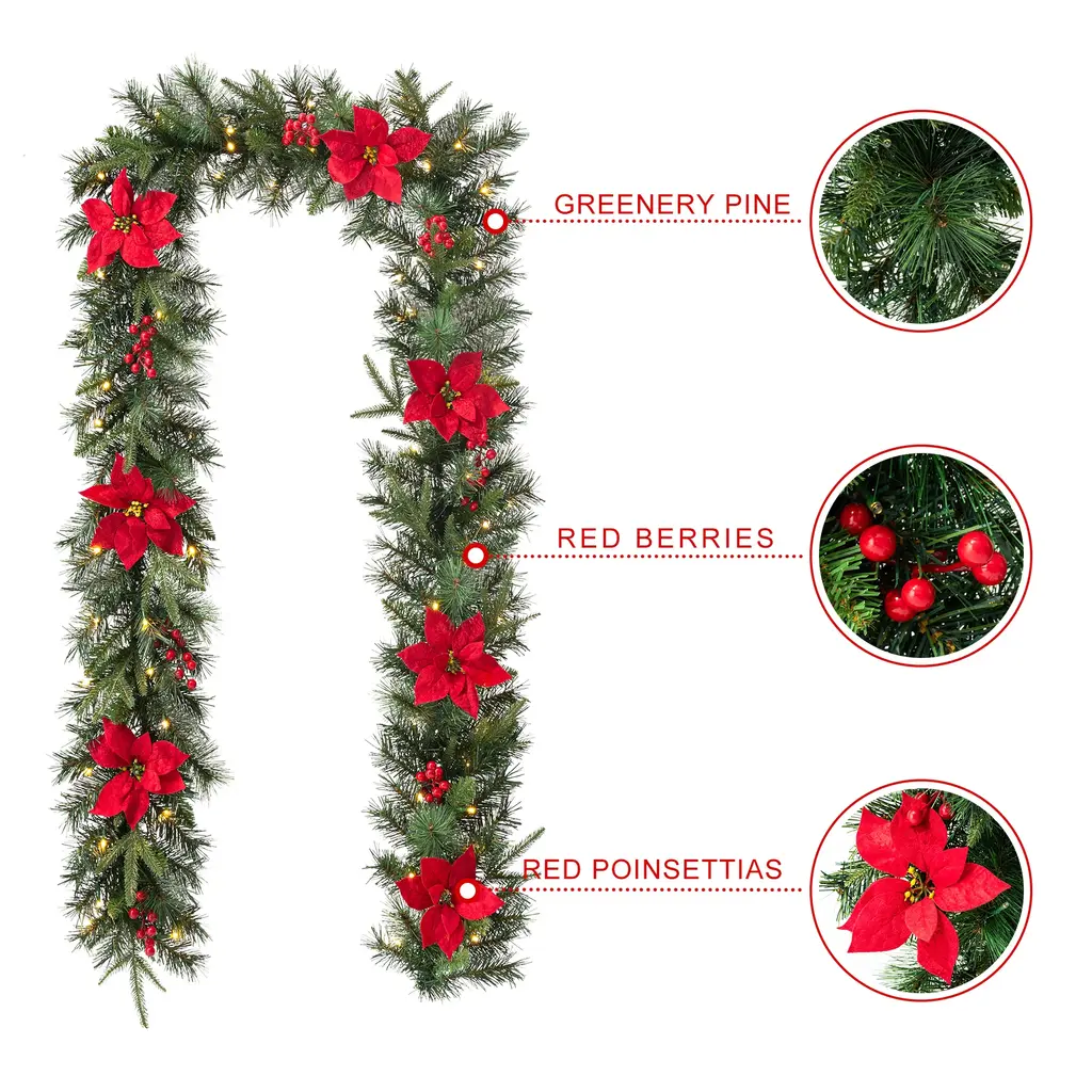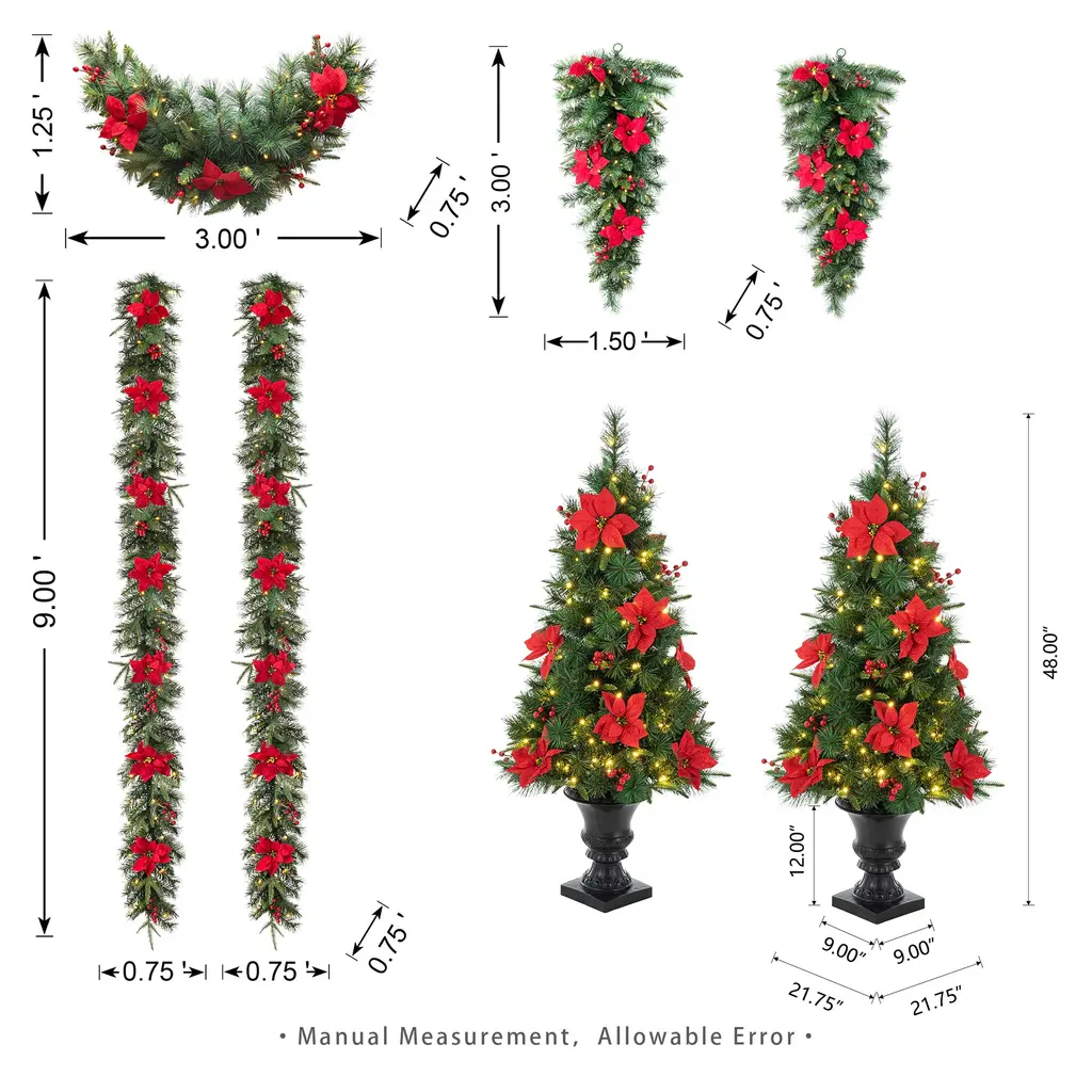 This mixed tips Pine Entrance Pot Tree with a decorative urn base is a welcoming addition to doorway, deck, porch or patio. It is trimmed with red berries, Poinsettia and holly leaves. This tree is pre-lit with warm white lights that remain lit even if a bulb burns out. Display this attractive greenery in any indoor or covered outdoor location.Features: Specifications of 4-foot Tree with Red poinsettias: Specifications of Garland & Wreath with Red poinsettias: Specifications of 5-foot Tree with White poinsettias: Brand Profiles:Glitzhome is a US registered trademark based in Texas USA. We are the professional designer and crafter of home decor products with more than 10 years'experience. Hope you could find your favorite items to add some fresh elements to your home.