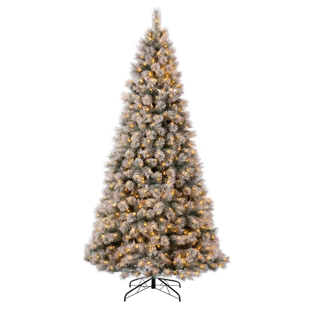 Glitzhome 6Ft/7.5ft/9ft Warm White Or Multi-Colored Pre-Lit Flocked Pine Artificial Christmas Tree - 9Ft Pine With 900leds