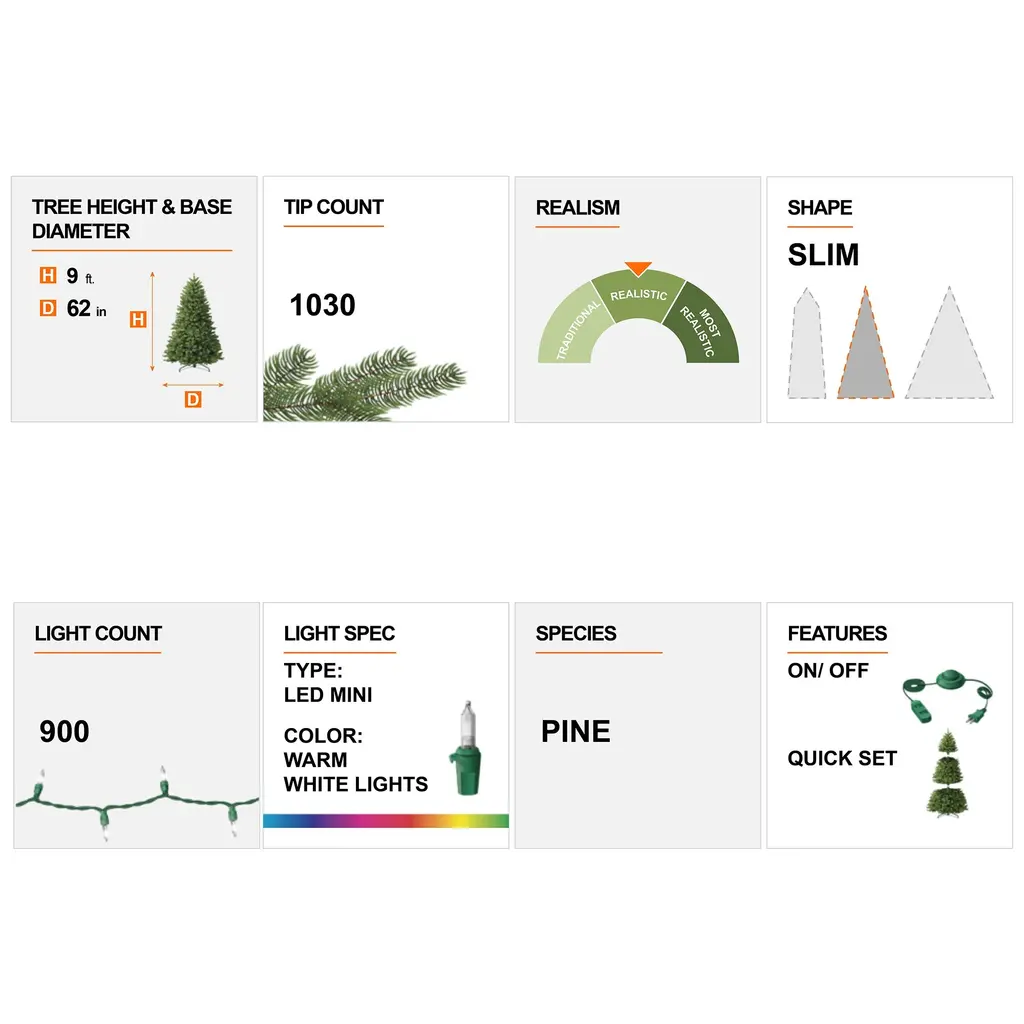 Create a winter wonderland in your home with the Glitzhome Pre-Lit Flocked Pine Artificial Christmas Tree. Made of PVC and metal, this tree has a realistic appearance and an elegant pencil pine style that fits beautifully in both large and small spaces. Choose between warm white or multi-color LED lights, with steady or color-changing settings, to create a festive ambiance. The hinged construction and easy assembly make decorating a breeze.Features:6ft Pine with 300 LEDs:7.5ft Pine with 650 LEDs:7.5ft Pencil Pine with 300 LEDs:7.5ft Pencil Pine with 350 LEDs:9ft Pine with 450 LEDs:9ft Pine with 500 LEDs:9ft Pine with 900 LEDs:Brand: