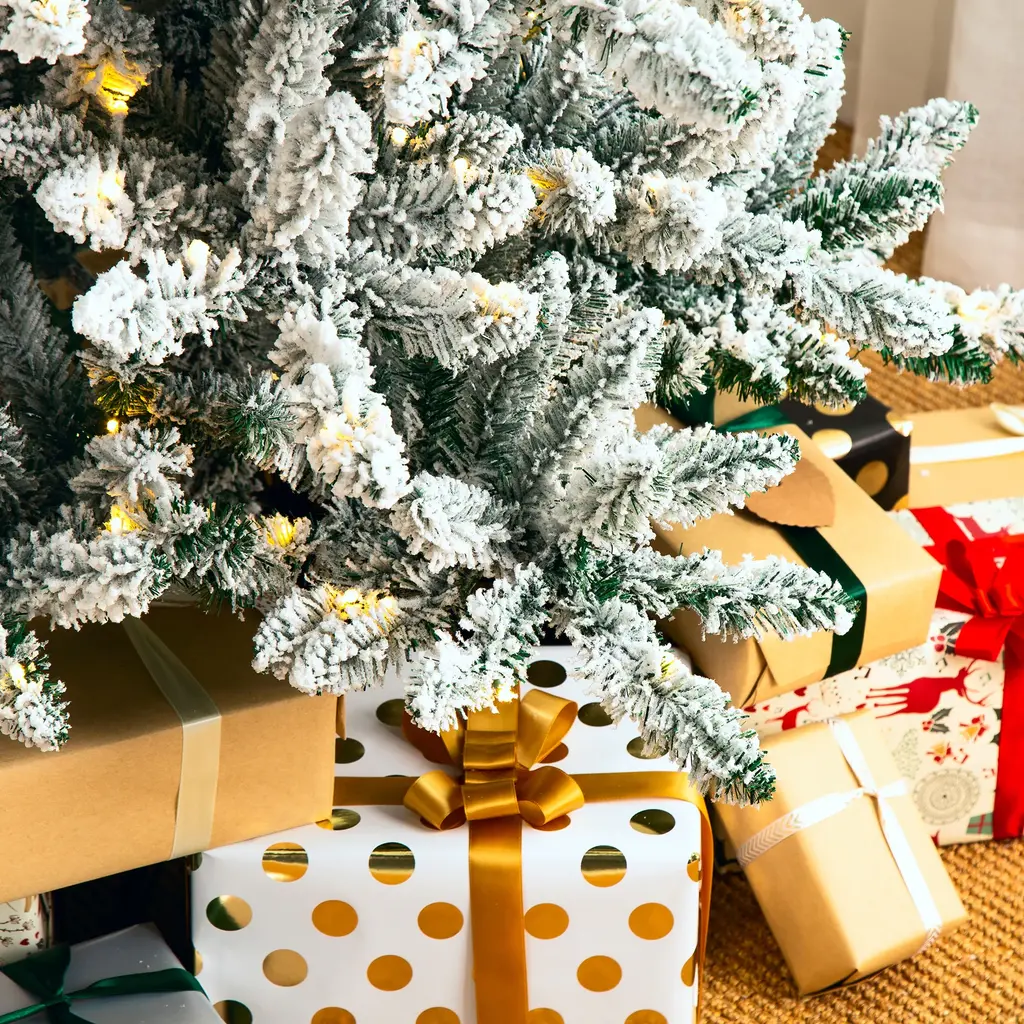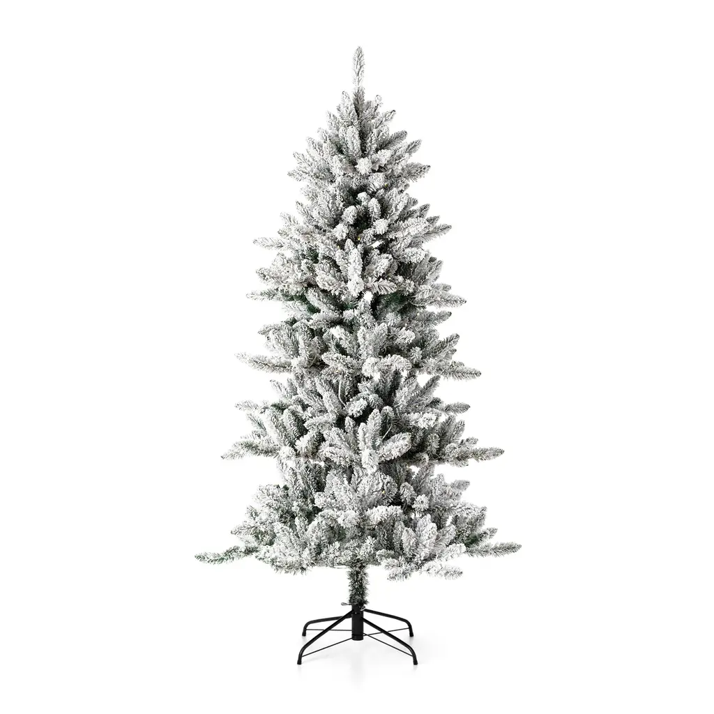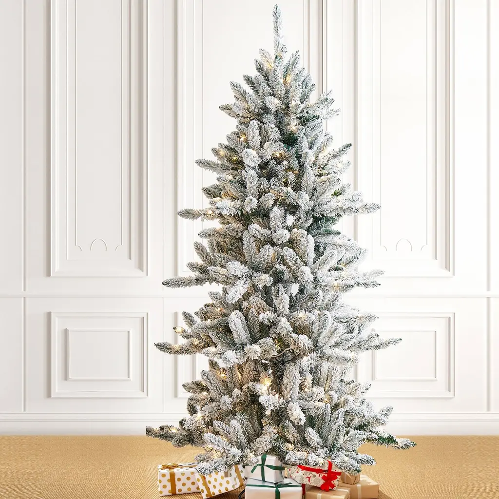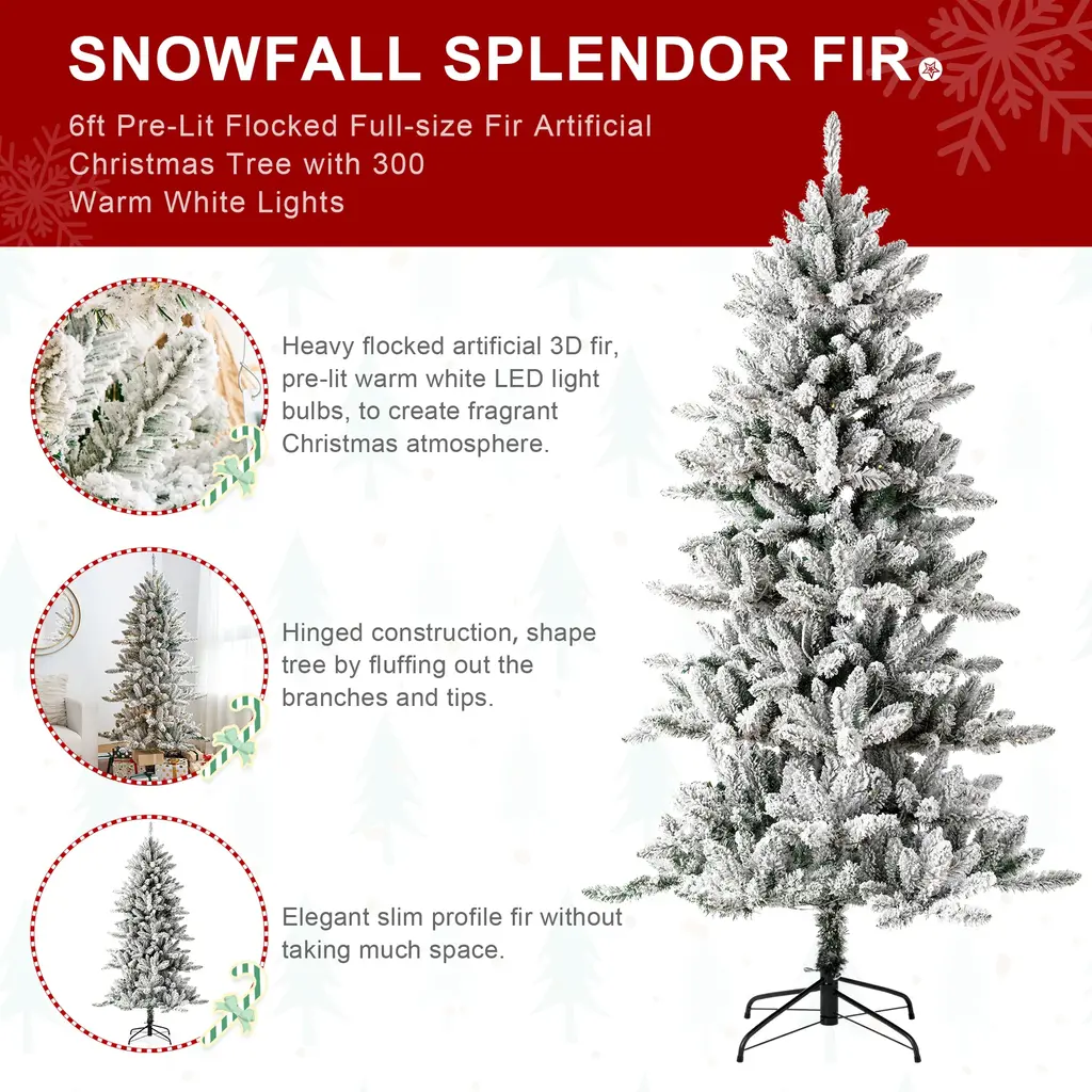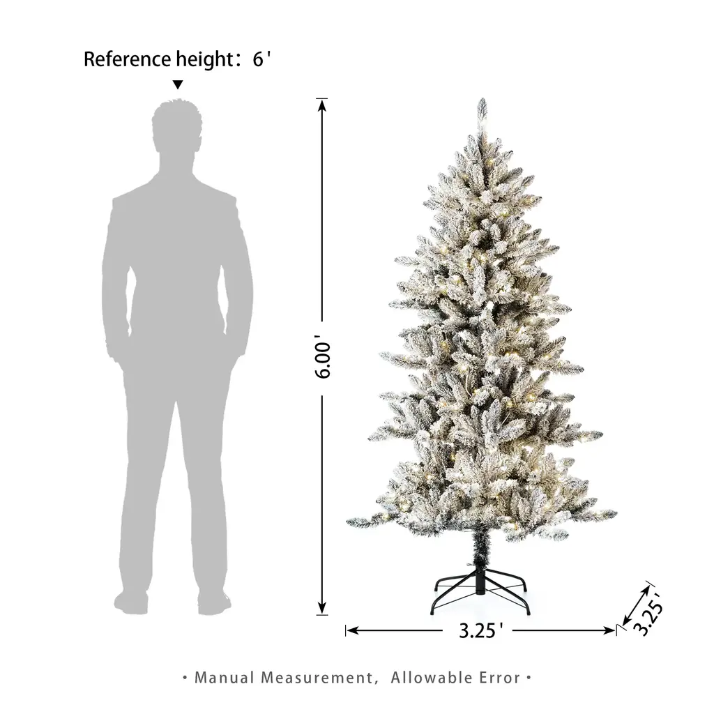 Glitzhome 6Ft/7.5ft/9ft/11ft Snow Flocked Pre-Lit Artificial Fir Christmas Trees - 6Ft Full-Size Fir