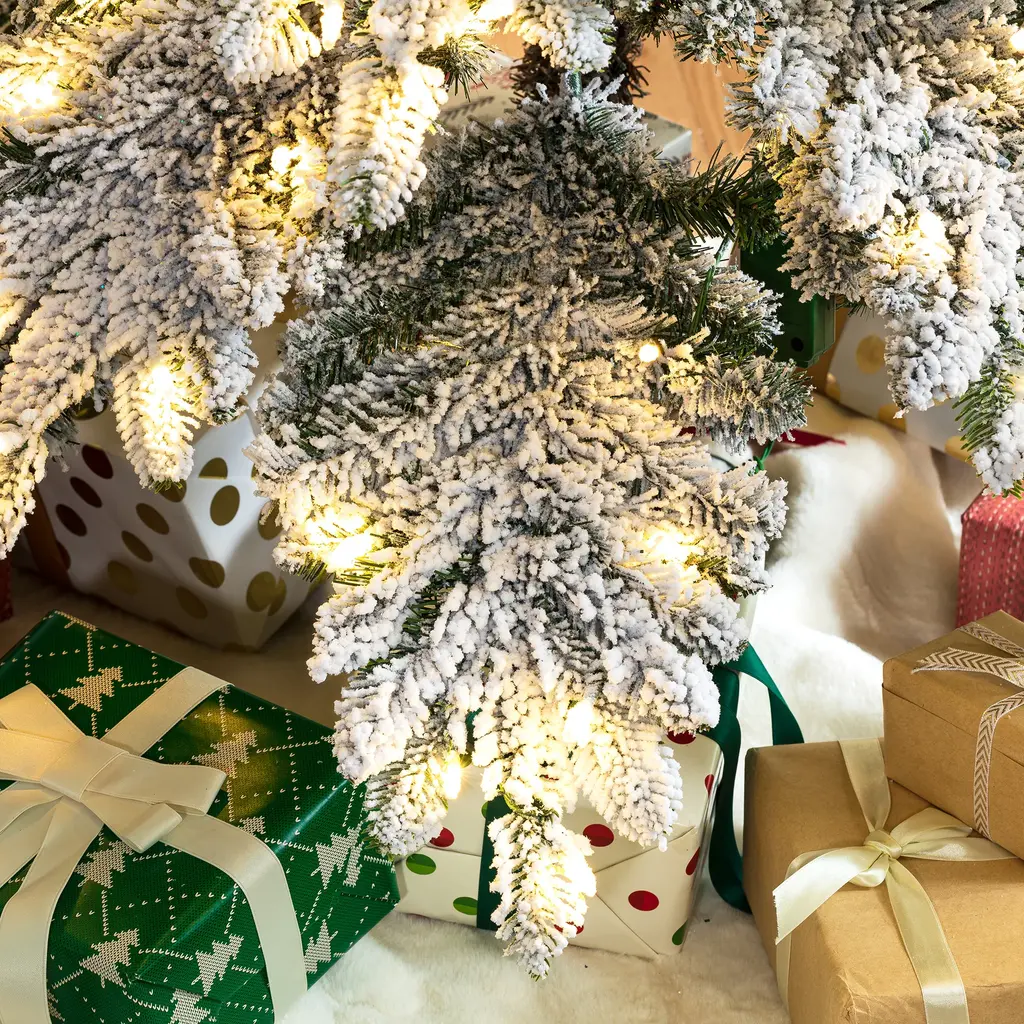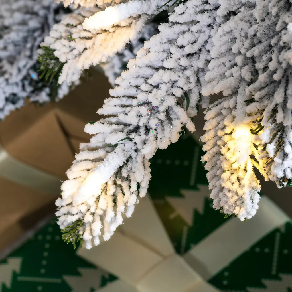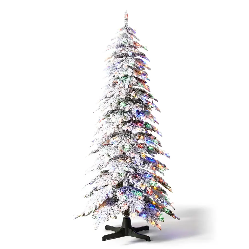 This 7.5ft Pre-Lit Snow Flocked slim spruce Artificial Christmas tree with roating stand adding a touch of realism to the artificial tree and allowing for a 360-degree display of the Christmas tree. Not only creates a visually appealing and authentic Christmas atmosphere,but also adds an extra element of excitement and versatility to your Christmas decorations.Features:Specifications for Tree:Specifications for Ornaments:Brand Profiles: