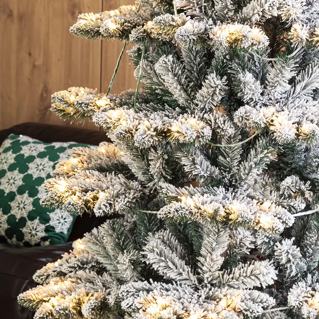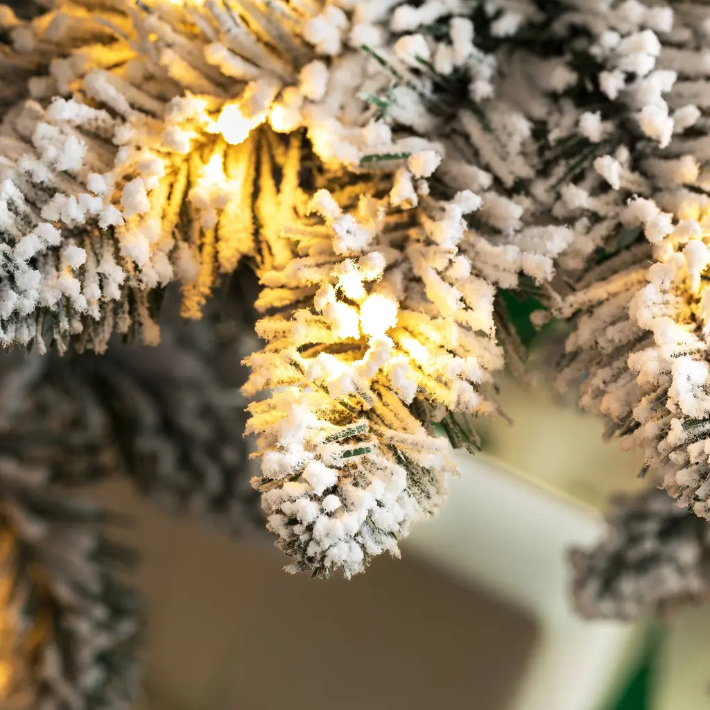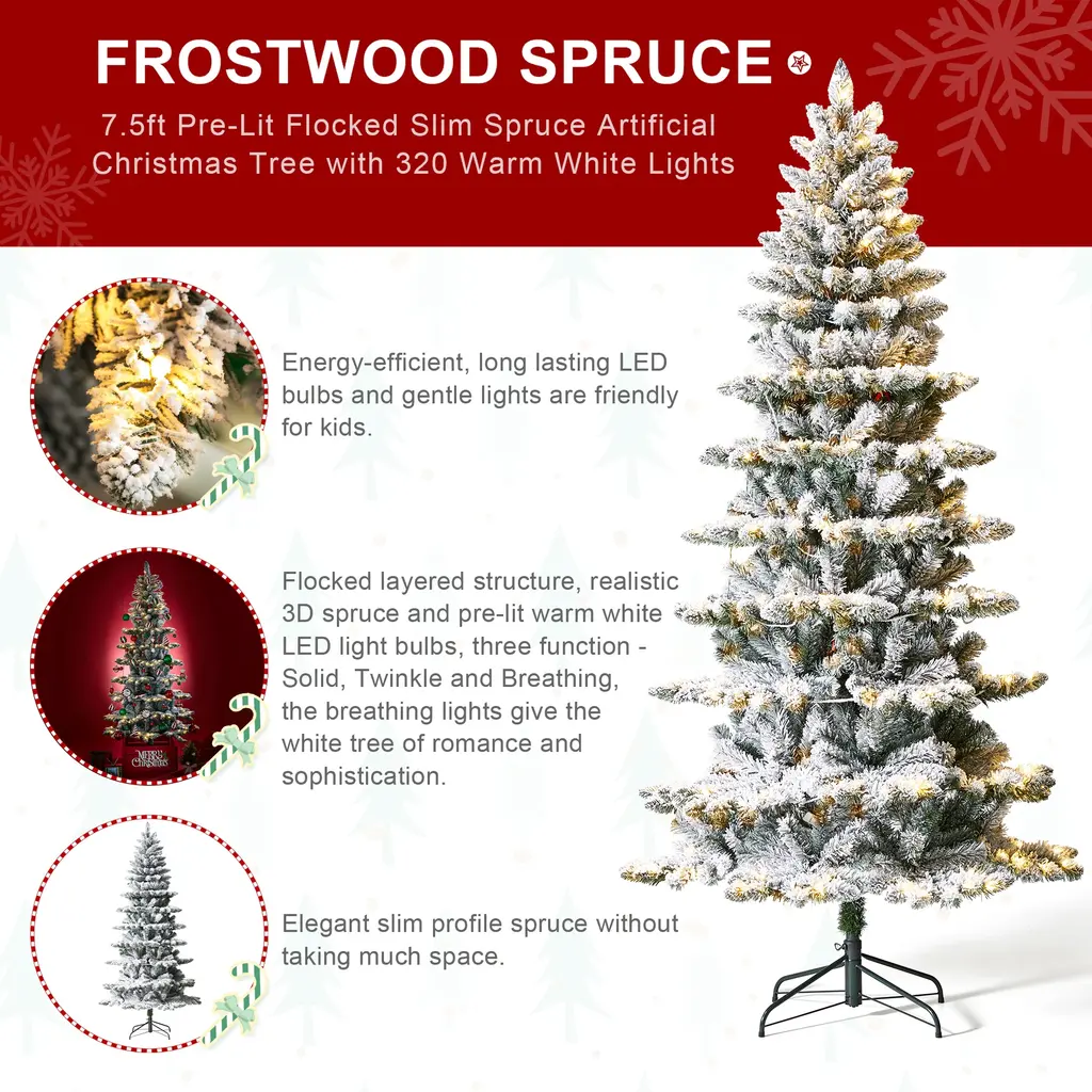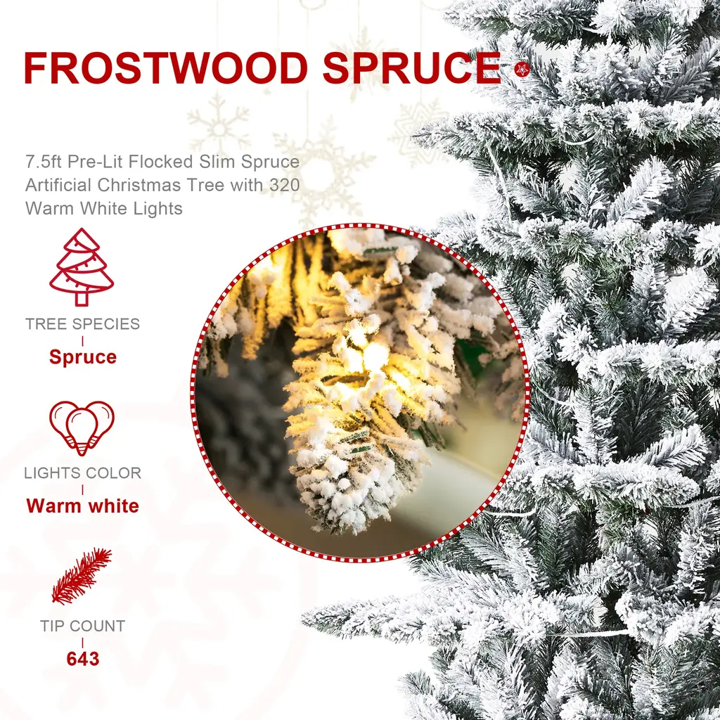 Glitzhome 7.5ft/9ft Pre-Lit Flocked Slim Spruce Artificial Christmas Tree With Warm White Lights - 7.5ft Green