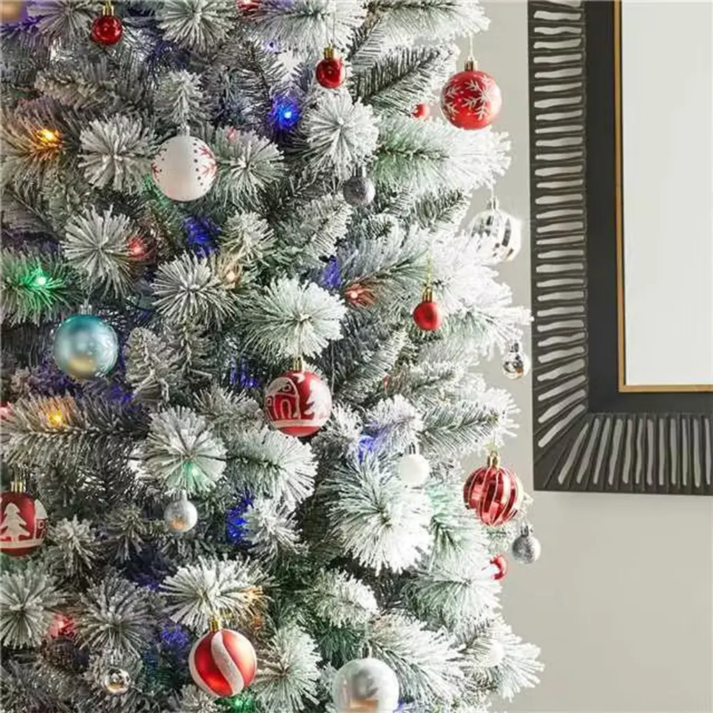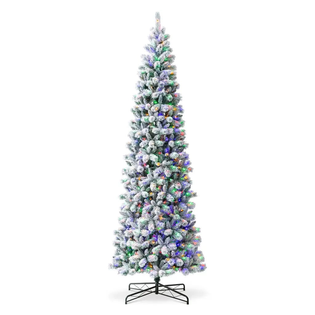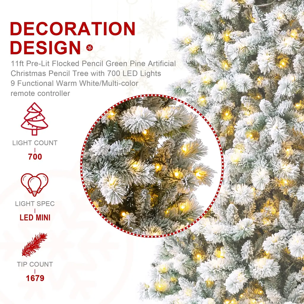 Glitzhome 7.5ft/9ft/11ft Pre-Lit Flocked Multi-Color Artificial Christmas Tree With Remote Controller - 11ft Flocked