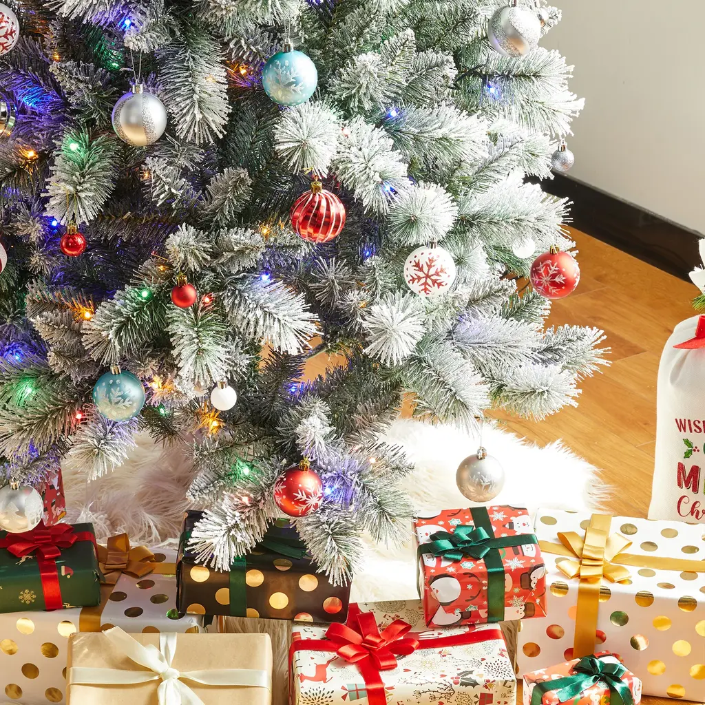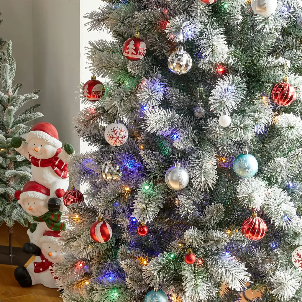 Glitzhome 7.5ft/9ft/11ft Pre-Lit Flocked Multi-Color Artificial Christmas Tree With Remote Controller - 9Ft Flocked