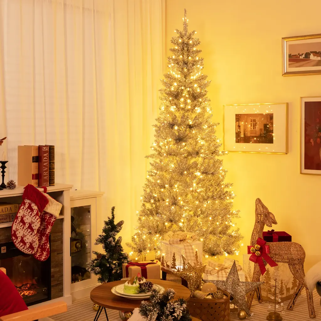 This 7.5FT/9FT/11FT Pre-Lit Green Pine Artificial Christmas tree creates a unique wintery feel, it will be an eye-catching addition to any room during the Christmas holidays. Illuminate your decor by adding a festive ambiance to your surroundings with this lighted artificial Christmas tree. The ambient glow from these luminaries is sure to create the mood for celebrating the season. Place it in your favorite spot and garner good compliments from everyone who glances.Features: 9 lighting modes With Remote ControllerSpecifications:- 7.5 Foot Flocked:- 9 Foot Flocked:- 11 Foot Flocked:- 7.5 Foot Frosted:- 9 Foot Frosted:Brand Profiles:Glitzhome is a US-registered trademark based in Texas USA. We are professional designers and crafters of home decor products with more than 10 years of experience. Hope you could find your favorite items to add some fresh elements to your home.