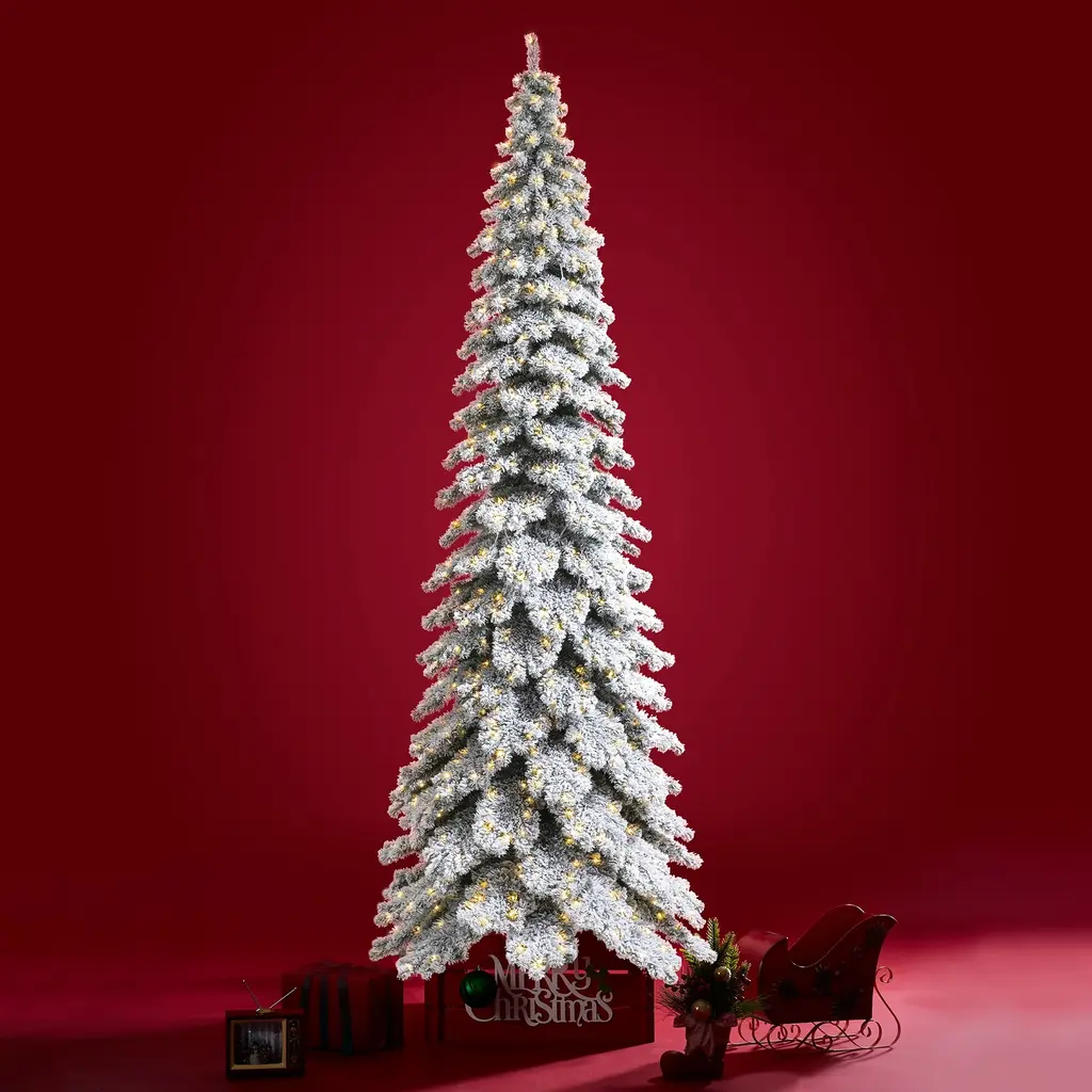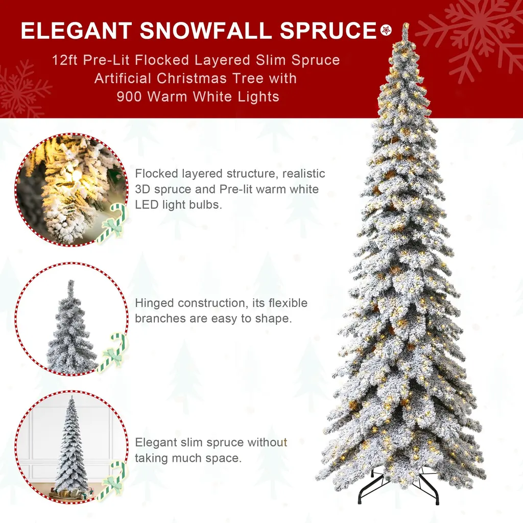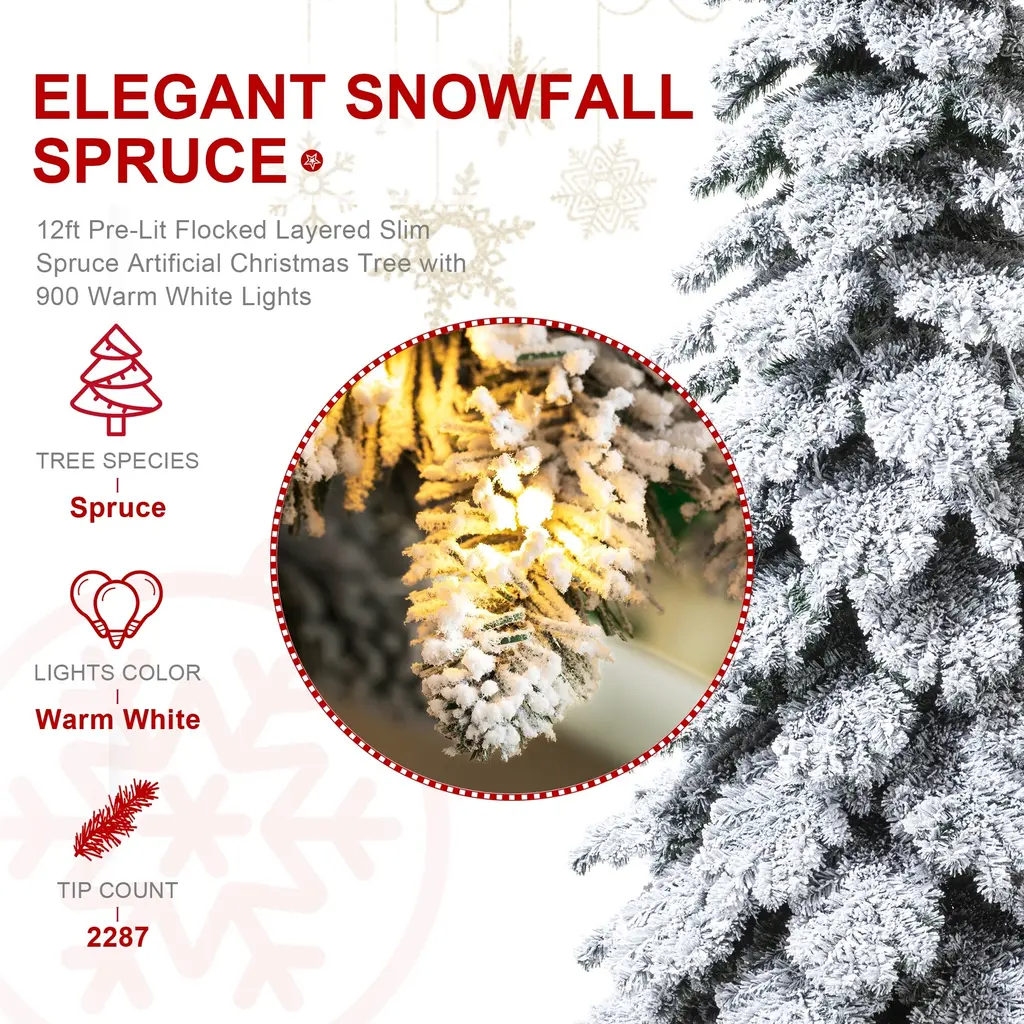 Glitzhome 7.5ft/9ft/12ft Pre-Lit Flocked Layered Spruce Artificial Christmas Trees - 12 Foot