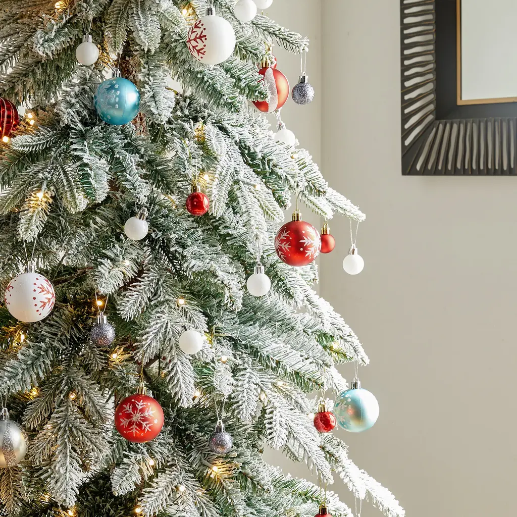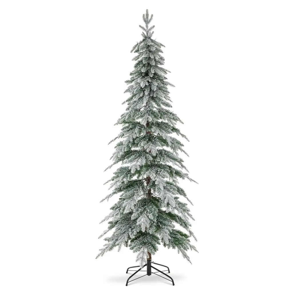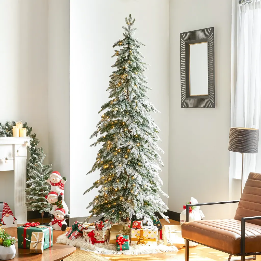 Glitzhome Pre-Lit Flocked Pencil Spruce Artificial Christmas Tree With Warm White Lights - 7.5 Foot