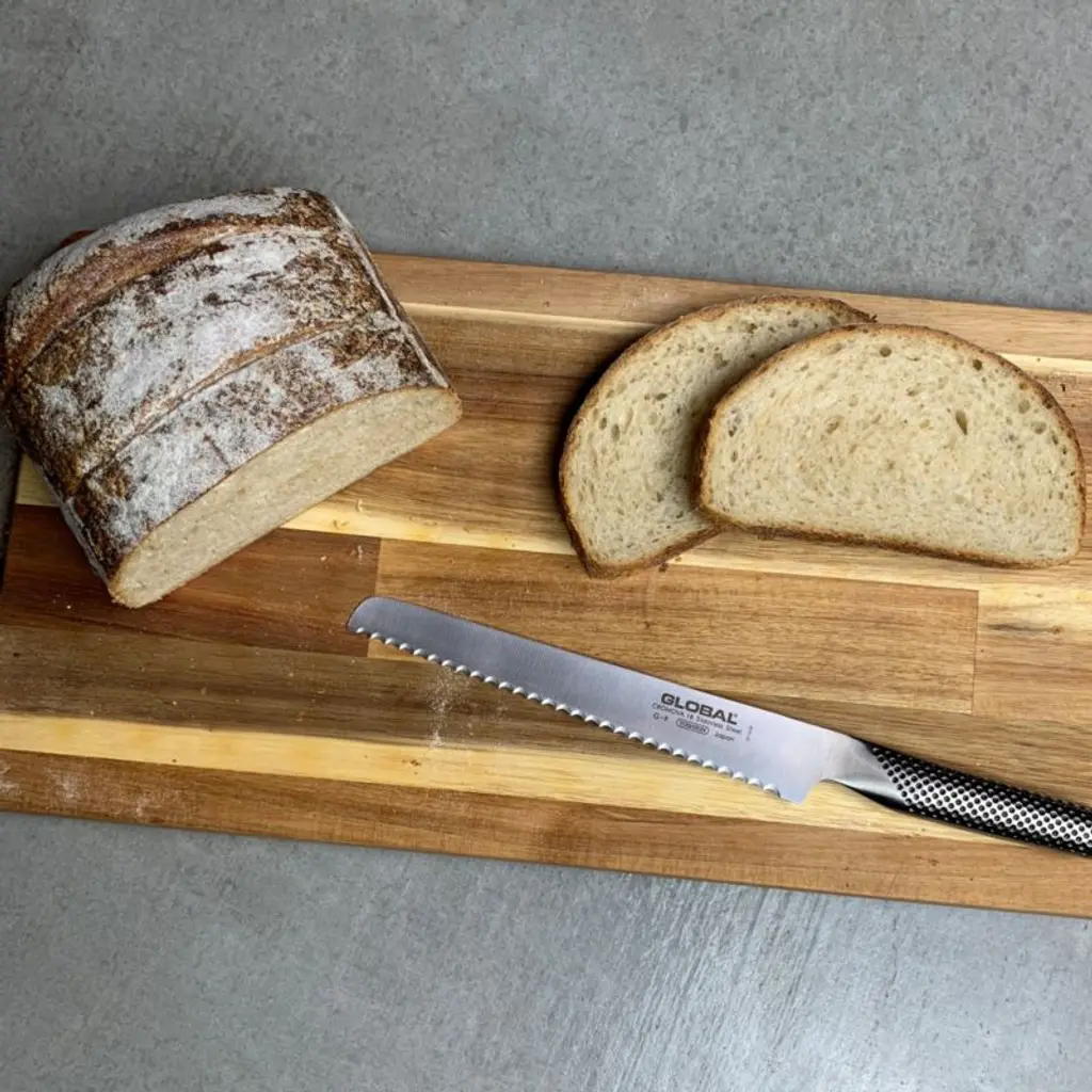 Crafted in Japan using a manufacturing method inherited from the Samurai sword, Global® cutlery features distinctive modern design with seamless, hygienic one-piece, stainless-steel construction, professional performance and a dramatic signature dimple pattern on the handles. Cromova 18 stainless-steel blades are ice-tempered and hardened to 56-58 on the Rockwell scale and sharpened by both ceramic water sharpener and whetstone. Slip-resistant, ergonomic hollow handles are filled with sand for ideal weight and balance. Serrated bread knife cuts through crusty loaves without crushing the soft interior. Need help choosing? Here's your essential guide to choosing the best knifeView all Global products All Clad and other Wedding Registry offers