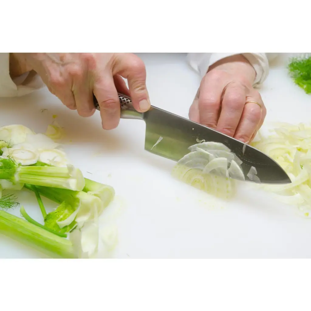 The Global Plain Round Tip Turner is a lightweight, precision spatula crafted from Japanese stainless steel. Its round tip easily slides under delicate foods like eggs, fish, or pancakes without tearing, while the ergonomic handle ensures comfort and control. Seamless and hygienic, this turner is built for daily kitchen use and easy cleaning.