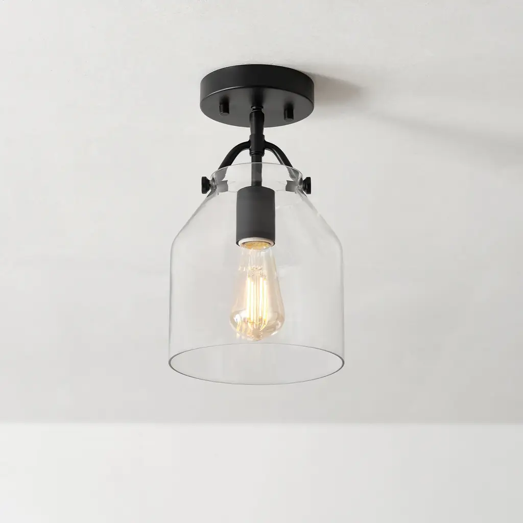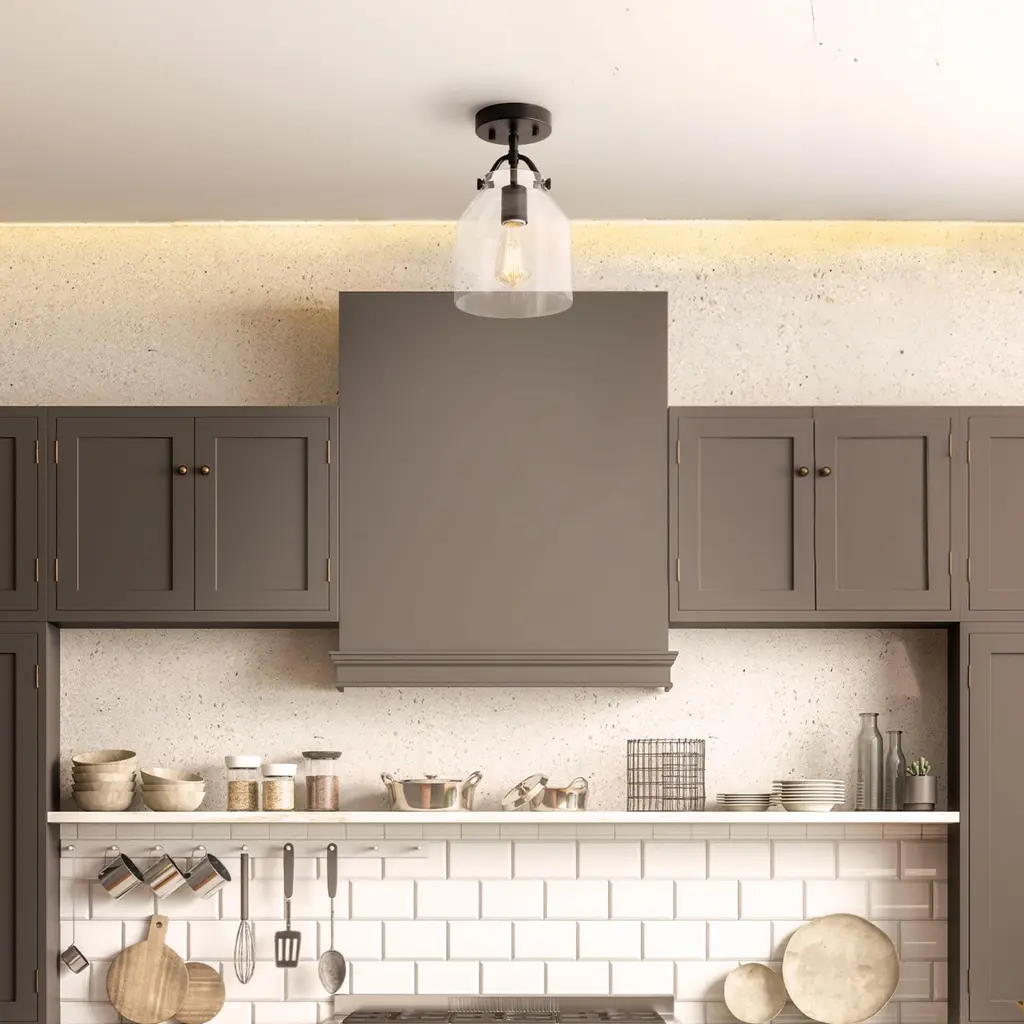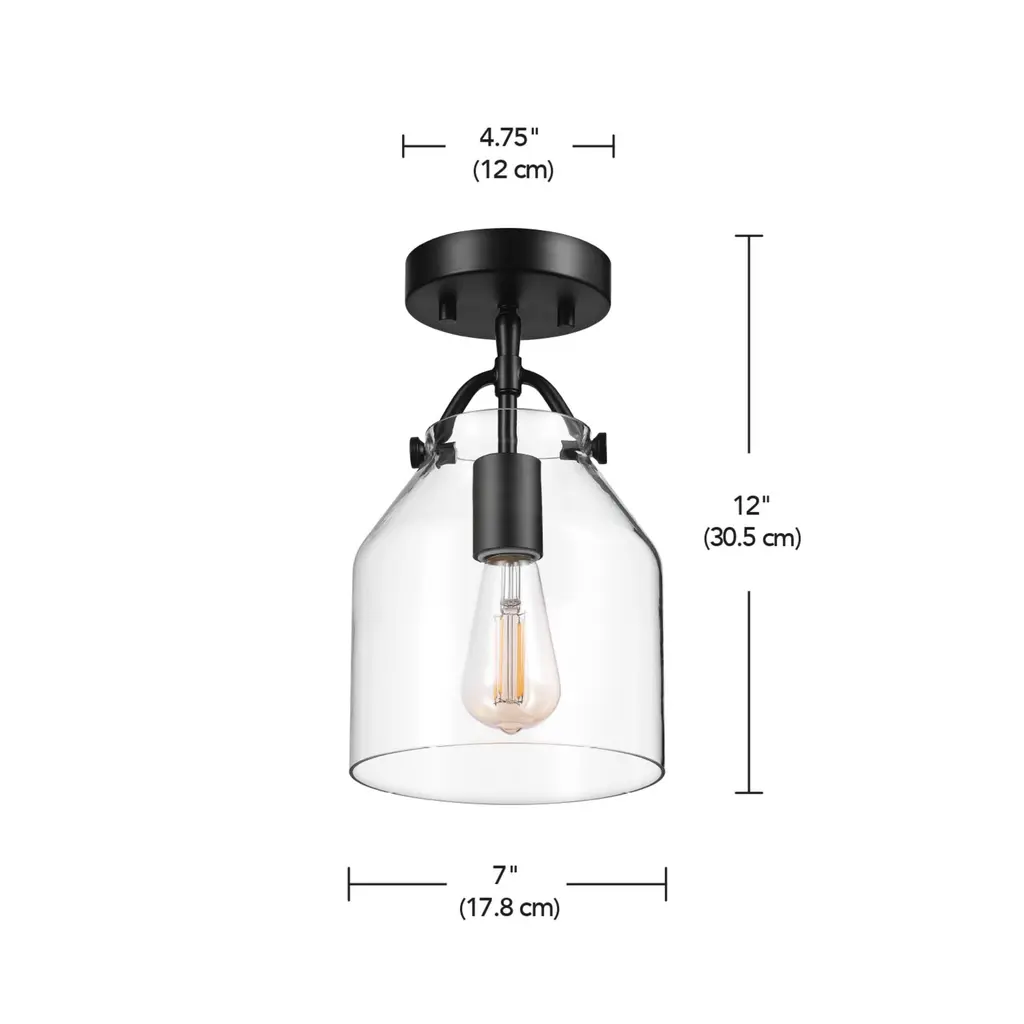 Globe Electric 91005467 Helm 7" Wide Semi-Flush Ceiling Fixture - Matte Black / Clear