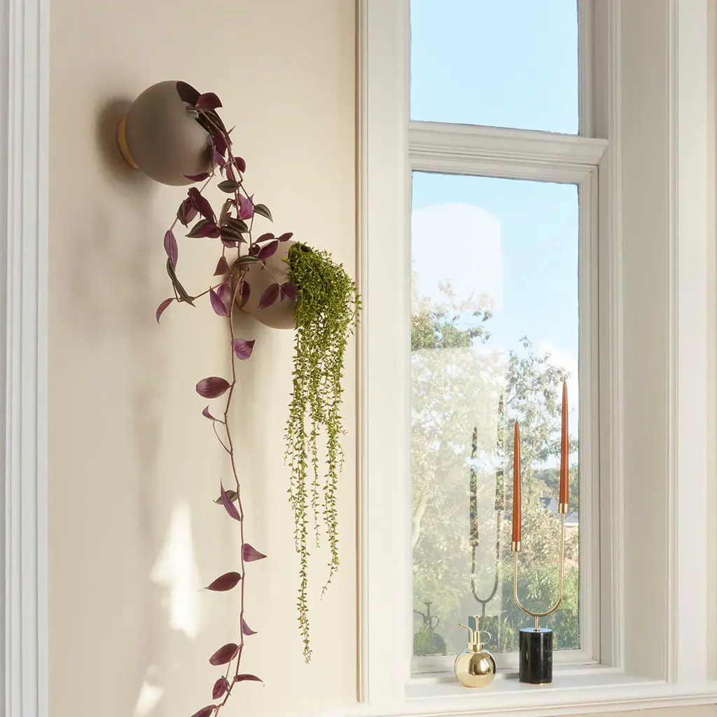 The Globe vase is one of the first products of the AYTM collection and has a design that combines two circles of different materials, with one carrying the other. This symbiosis of circles represents balance and stability, making the Globe vase one of our signature products to this day. The Globe wall flowerpot is a beautiful addition to this story. Greenery is becoming a bigger and bigger part of our interior choices, both indoors and outdoors, as being close to nature helps us enter a state of peacefulness. With the Globe wall flowerpot, you can really utilize all walls in your home in a green way, making room for more space on the floors and tables.