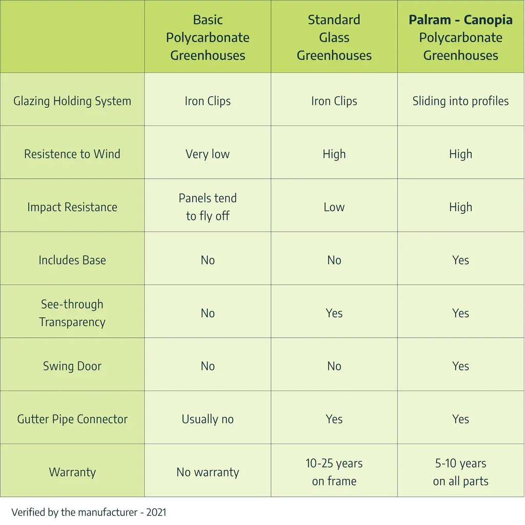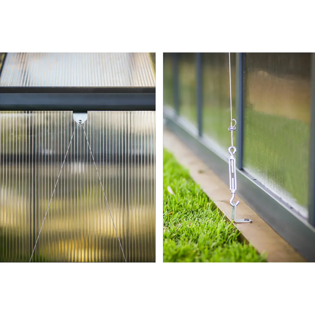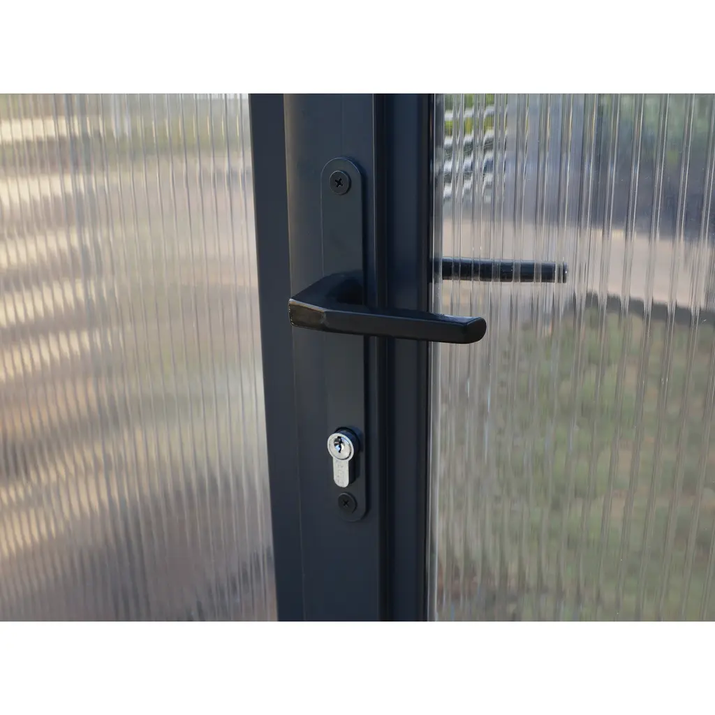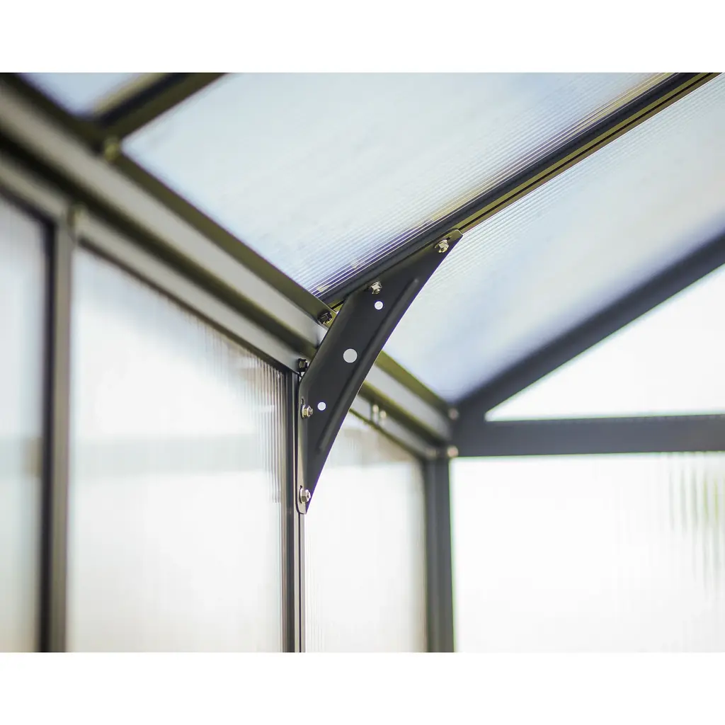Discover the Excellence of the Glory Greenhouse: Your Partner for Superior Backyard GardeningTransform your gardening with the Glory Greenhouse, meticulously designed to offer the best in comfort, growth, and resilience. With a spacious entrance and thoughtfully included accessories, you'll enjoy perfect ventilation and effortless control over moisture and temperature, essential for thriving plants.Elevate Your Gardening Experience:• Enhanced Growing Space: The high roof and extended eaves not only add elegance but also provide significant headroom and space, allowing you to grow tall and lush plants with ease.• Durable Design: Crafted with an eye for beauty and longevity, the gray powder-coated aluminum framework is both stylish and sturdy, ensuring your gardening pleasure for years to come.• Stability and Support: An included steel base kit enhances height, adds critical support, and ensures your greenhouse remains stable and aligned in any weather.• Unmatched Durability: Our twin-wall polycarbonate panels are virtually indestructible, hail-resistant, and UV protected, offering unmatched protection and optimal insulation.• Superior Frame Strength: With an aluminum frame that's 50% thicker than standard, our greenhouse withstands corrosion and maintains a rigid structure for reliability.• Ample Space for Growth: Enjoy a vast interior with a high ceiling (103") and tall eaves (73.4"), perfect for trellising your favorite tall plants.• Accessibility: The wide entrance door (31.5" W x 74" H) and low threshold ensure easy access, whether you're using a wheelbarrow or wheelchair.• Weather-Ready: An integrated anchoring system, along with an external kit, offers unparalleled support and stability through harsh conditions.• All-Inclusive Accessories: Comes complete with roof vents, automatic vent openers, a side louvre window, plant hangers, and an anchoring kit for a comprehensive gardening solution.• Sustainable Features: Large closed gutters and gutter heads allow for rainwater collection, promoting a sustainable irrigation practice.• Maintenance-Free: Spend more time gardening and less on upkeep with our easy-to-install, maintenance-free design.