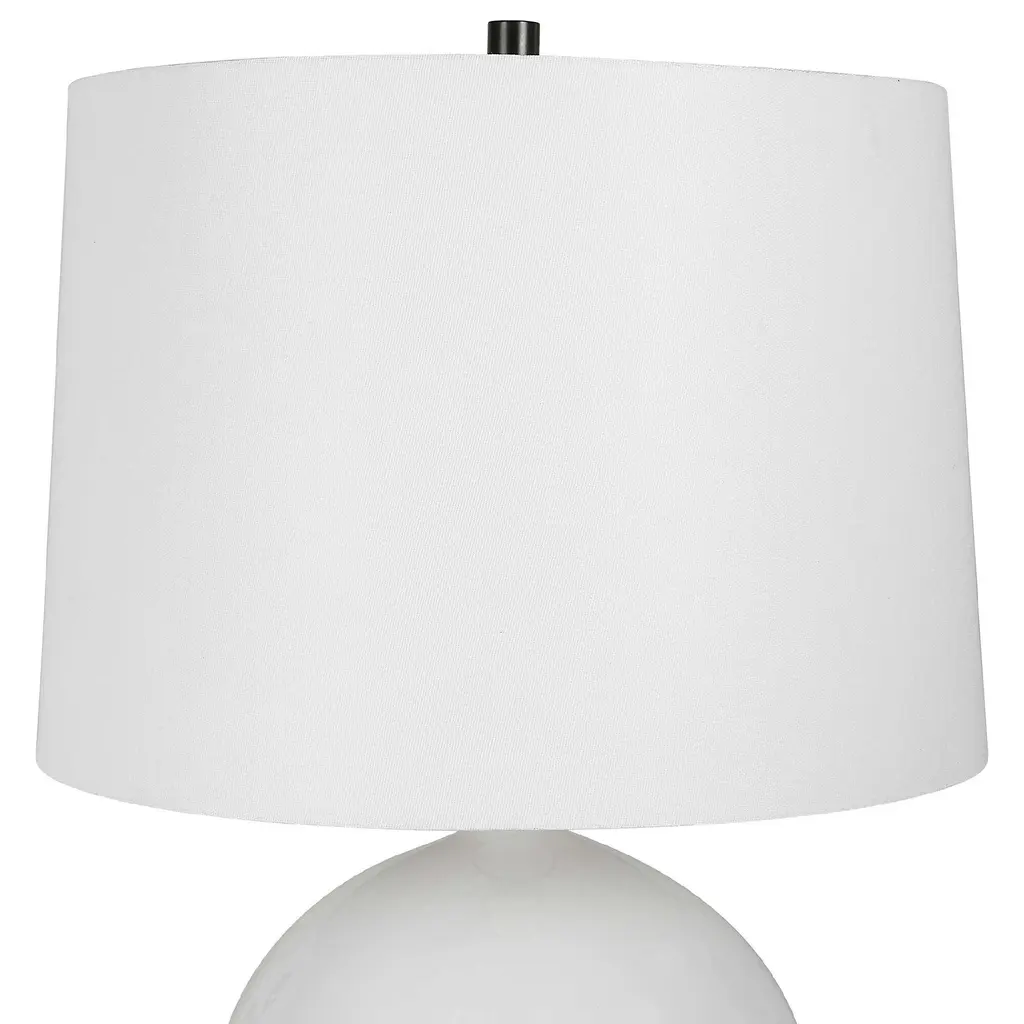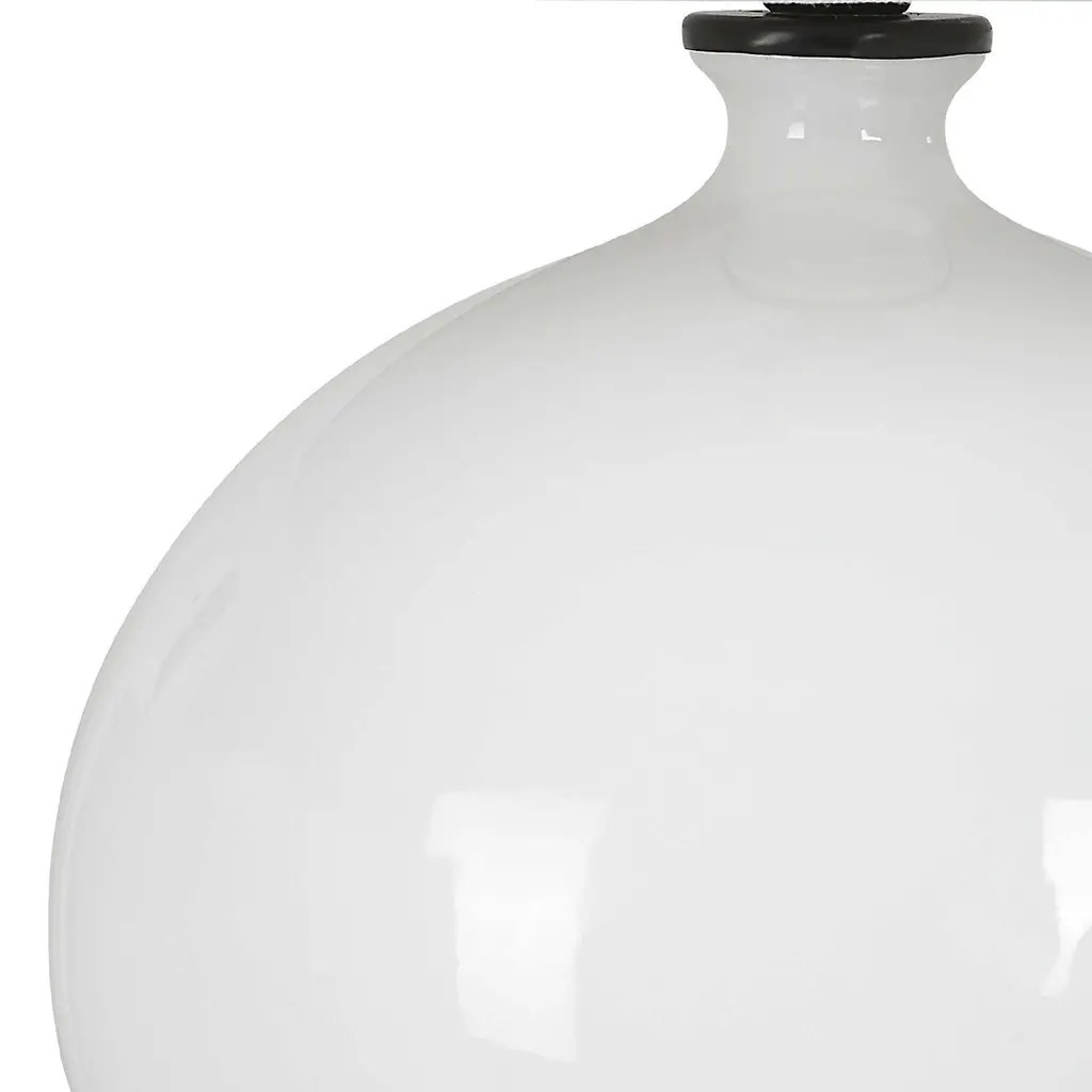 Illuminate your space with the understated elegance of this collar table lamp. Its rounded ceramic base features a glossy white glaze with satin black accents for a touch of sophistication. Topped with a white linen shade, this lamp exudes a soft, ambient glow, perfect for any room. Product Features: Decorative table lamp Rounded ceramic base with glossy white finish Accented with satin black details Includes a tapered hardback shade Convenient 3-way switch for easy operation Bulb base type: E26 Lamp uses (1) 150-watt bulb - not included Assembly required For indoor use only Overall Dimensions: 26" high Shade dimensions: 11" high x 16" diameter Base dimensions: 5" diameter Material(s): ceramic/iron/linen