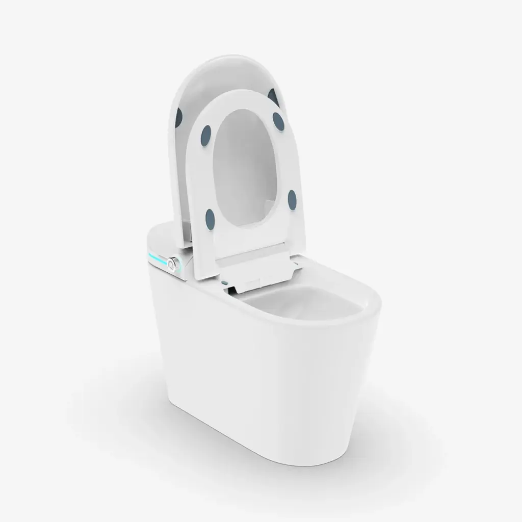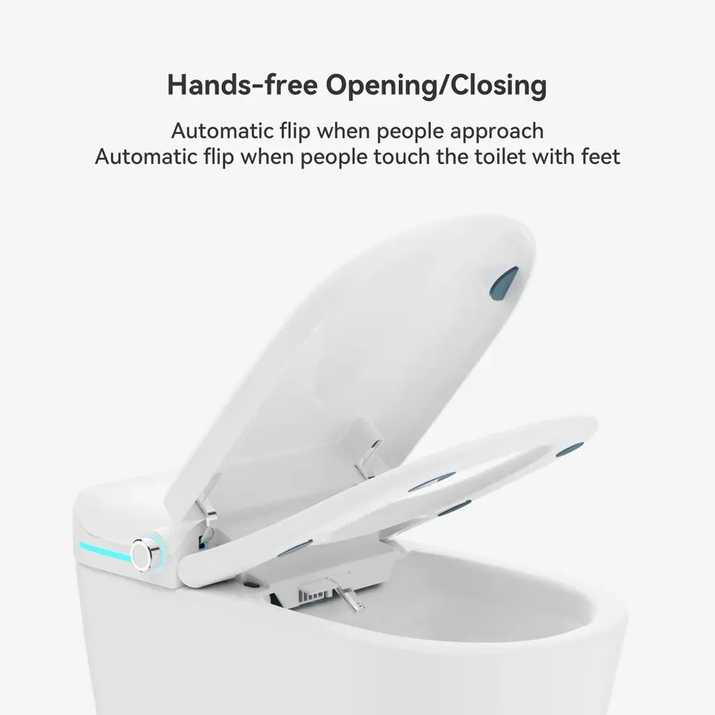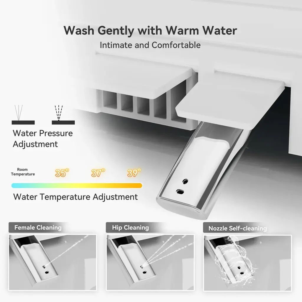 Upgrade your bathroom to a new level of comfort and intelligence with our advanced Smart Toilet. Designed to perform even in areas with low water pressure thanks to its built-in water tank, this toilet combines function, hygiene, and elegance all in one. The rear ambient LED light not only creates a soothing atmosphere at night, but also serves as a convenient nightlight. The stainless steel spray wand features UV sterilization to ensure every use is clean and bacteria-free. Once the lid is closed, the self-cleaning UV process automatically begins for added protection. It also includes an integrated aromatherapy slot – simply open the lid and add a few drops of your favorite essential oil to enjoy a fresh scent every time you use the toilet. With a 17.3" seat height that meets ADA compliance, it ensures comfort and accessibility for adults, the elderly, and people with limited mobility. Perfect for modern living, this smart toilet transforms your bathroom into a space of luxury and wellbeing.